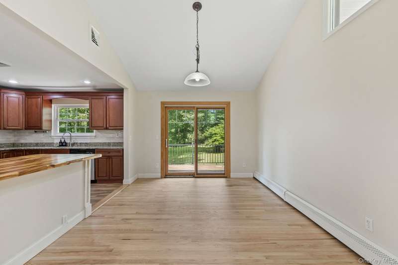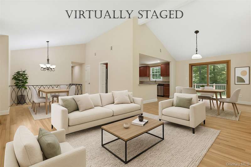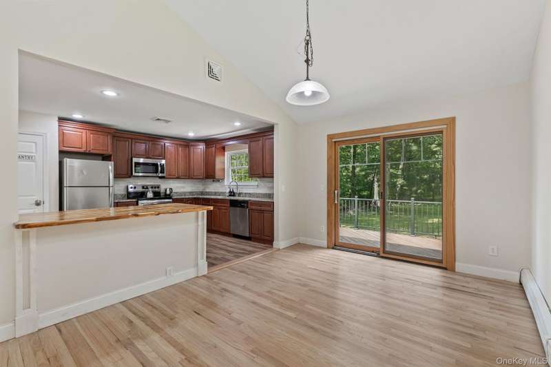 Tucked away at the end of a newly paved private drive, this inviting raised ranch offers the perfect blend of privacy, space, and modern updates. Set on 1.4 secluded acres, this 3-bedroom home welcomes you with freshly refinished hardwood floors and a bright, freshly painted interior. The main level features an open living and dining area, a beautifully updated kitchen, and two renovated baths, including the primary suite bath (updated in 2022). Step out onto the extended deck ideal for relaxing or entertaining while enjoying the peaceful surroundings. Downstairs, you ll find a spacious family room, an additional half bath, two versatile rooms perfect for a home office, gym, or guest space, plus laundry, utilities, and access to the garage. Additional highlights include a new boiler (2022), Pella windows and doors, easy-care property, and the rare advantage of total privacy just minutes from local amenities only 2.3 miles to the town lake and beach, and less than 4 miles to shopping
