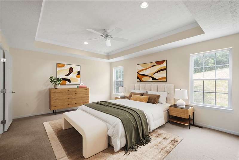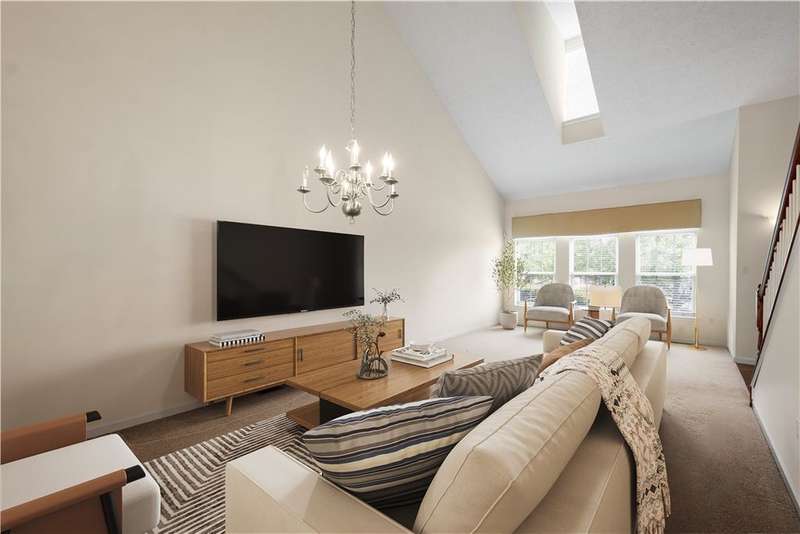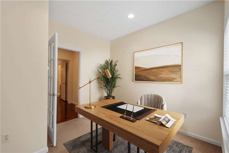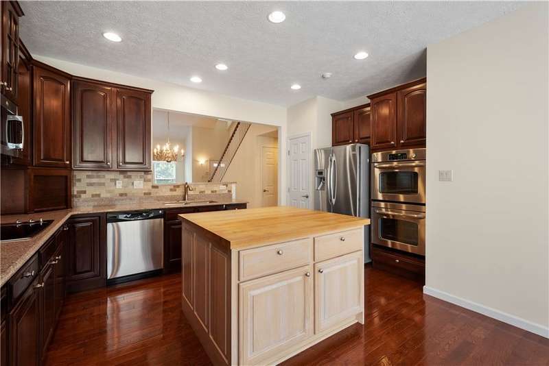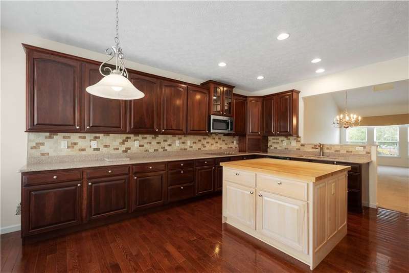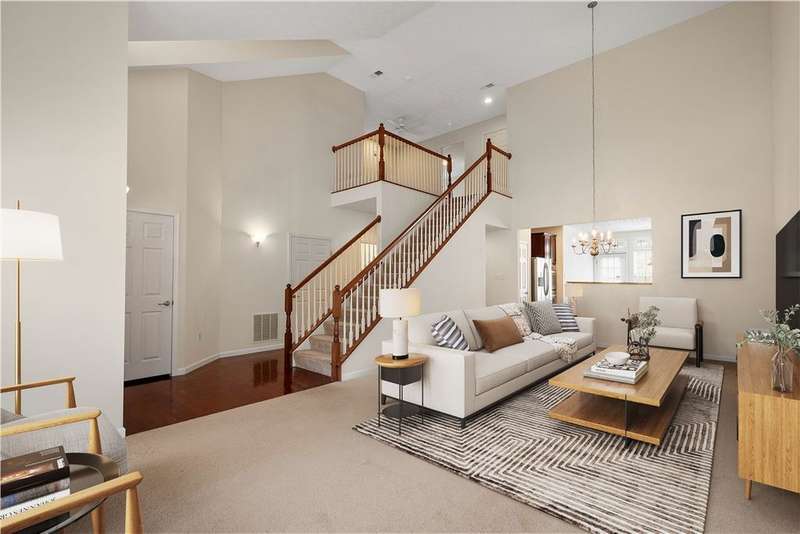 Well sought after Maple Ridge! Low maintenance main floor living, desirable end unit with original builder upgrades, show stopper great room, soaring ceiling, airy loft area, inviting entry foyer with grand staircase and main floor office/den, open concept Chef's kitchen & eating area, well-appointed appliances including a double wall oven, pantry and a center island, owners suite boasts a tray ceiling, spa like bathroom with a tub, ceramic tile shower and two walk in closets, second floor retreat offers two bedrooms w/ walk in closets, a spacious loft area and a full bath. The ease of a main floor laundry room and a 2 car level entry garage, private deck, an abundance of storage, 1500 SF lower level potential, plenty of green space, place this home at a cut above the rest. A super location close to South Pointe, Peters Township and South Fayette Shopping and dining, quick access to I-79