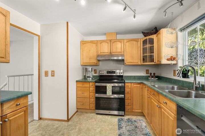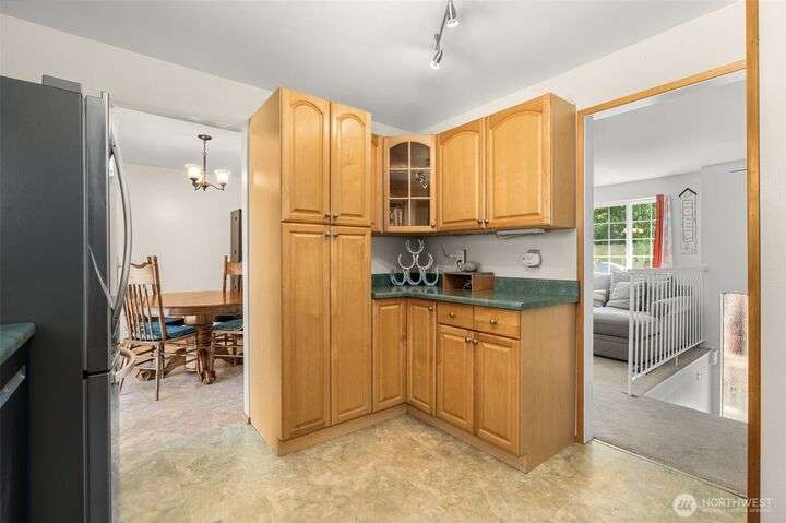 Summertime goals: a lush oversized lot with tranquil backyard featuring tiered entertainment deck overlooking pond, patio, mature plantings, and firepit area! Private cul-de-sac location leads to stately 4 bedroom home, stay cool with AC. Living room filled w natural light from picture windows & offers a wood-burning fireplace. Kitchen has warm wood cabinetry & new stainless appliances. Dining room leads out to showcase deck perfect for BBQs & hosting gatherings. Fantastic floorplan w 3 BDRMs up, incl Primary Suite w/ it's own attached 3/4 bath. Daylight lower lvl is finished: great family rm, walkout to the backyd via slider, a 2nd fireplace, & custom built-in bench seating. 4th bedroom + a full bath is perfect for guest stay. 2-car Gar.