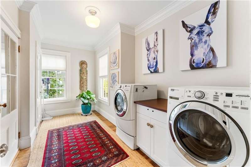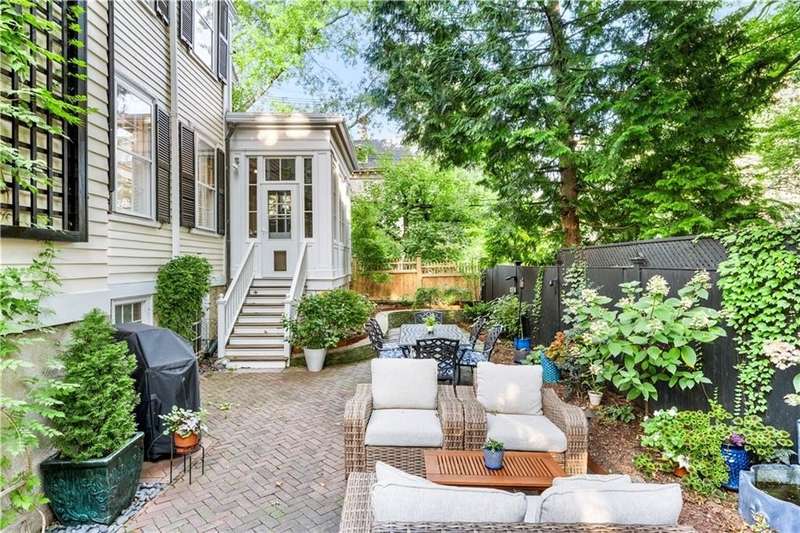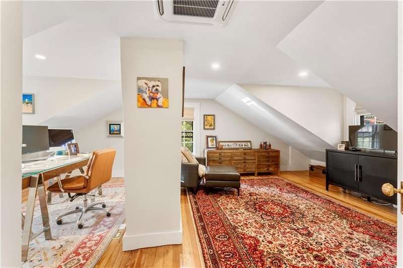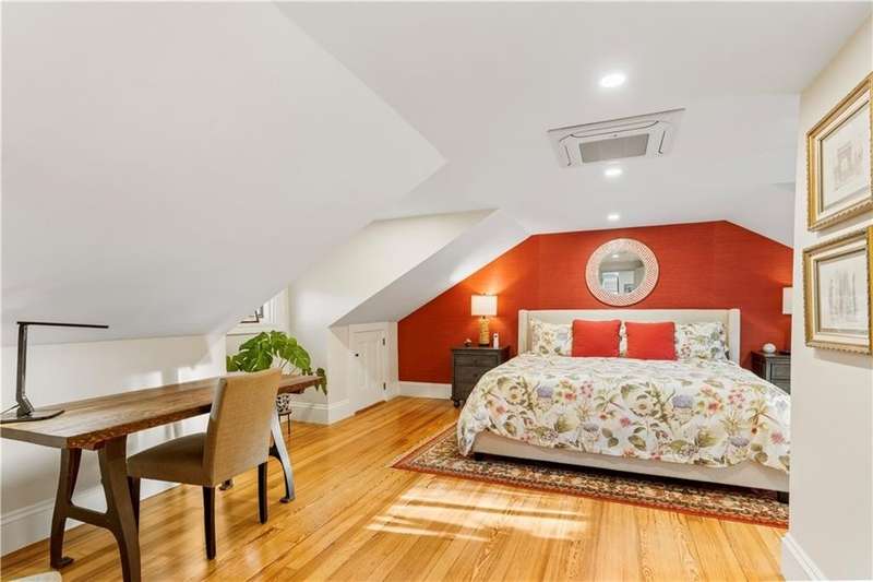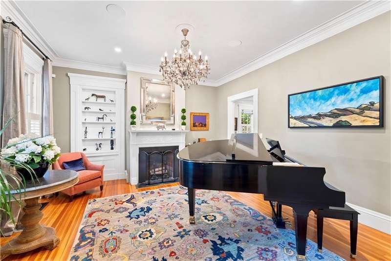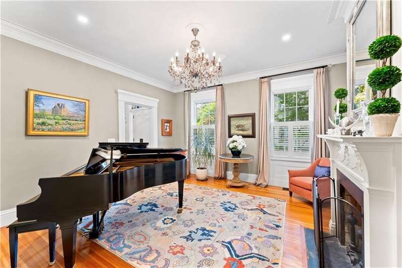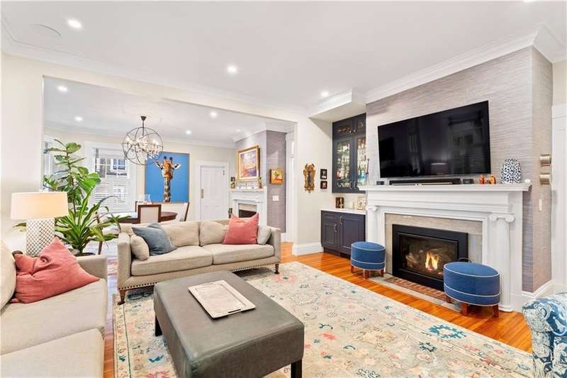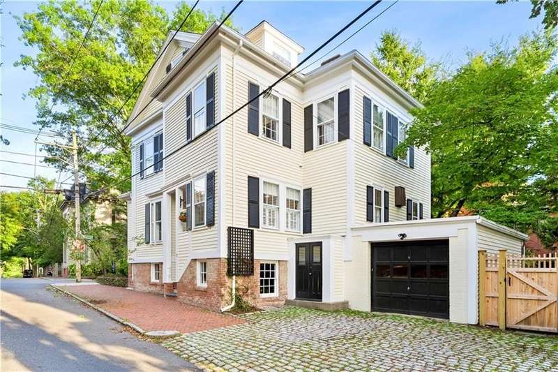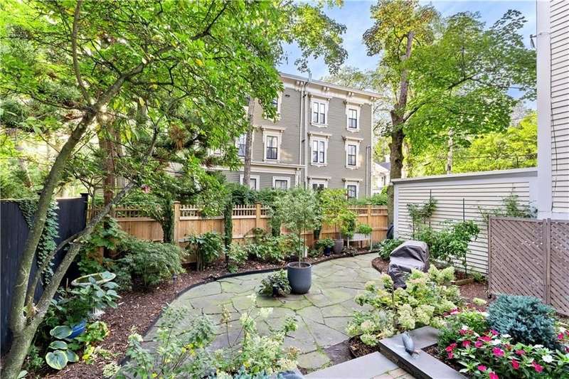 Welcome to the fabulous George F. Gladding House! Perched on one of the most prominent spots in Providence’s coveted College Hill neighborhood, this 1845 Greek Revival has been thoughtfully, and thoroughly, updated with an impeccable eye for detail, with gorgeous crown molding and built-ins, soaring ceilings, and tons of historic details – including 7 working fireplaces. From the main entrance, a stately front hall opens onto a front parlor and a private home office with a half bath. The spaciously redesigned living room, with a gas fireplace, wet bar, and fridge, opens to an elegant dining room. An adjacent sunroom offers a quiet retreat, and steps down onto a private, lusciously landscaped private courtyard patio and garden. The stunning eat-in kitchen features radiant-heated Spanish marble floors, high-end appliances, a breakfast nook, and a dedicated mud room. Upstairs, find two primary suites – the larger offering a fireplace, soaking tub, and radiant heat – plus two additional bedrooms, a family bath, and a laundry room. The third floor includes a private guest suite and additional office space. A new HVAC system with central air, as well as new insulation, adds year-round comfort. Located just around the corner from Prospect Terrace Park, and moments from Brown, RISD, and incredible Downtown and East Side shops and restaurants, this truly special home offers the ideal blend of historic charm and modern luxury living in one of Providence’s most desirable locations.