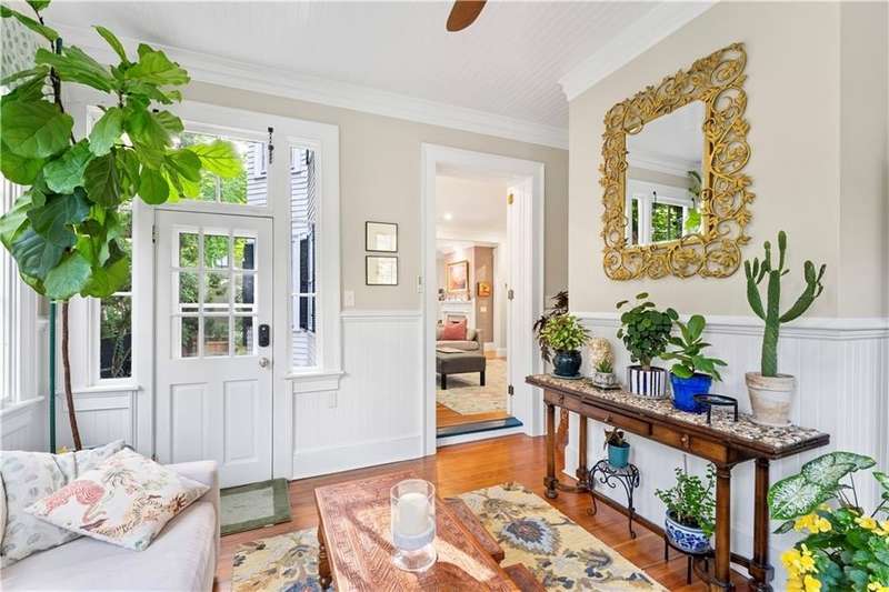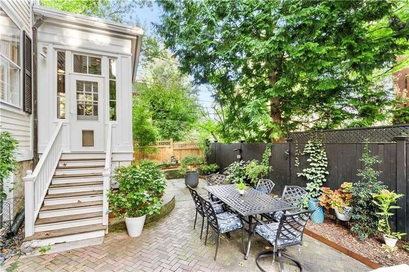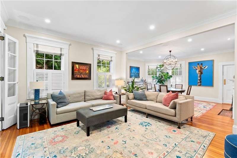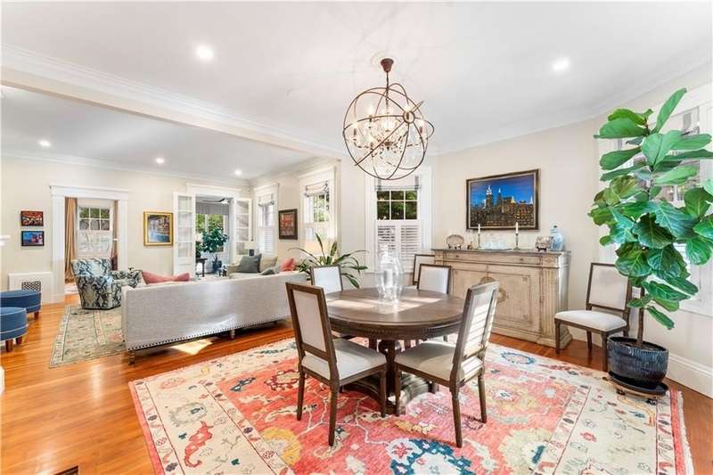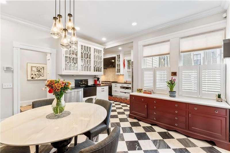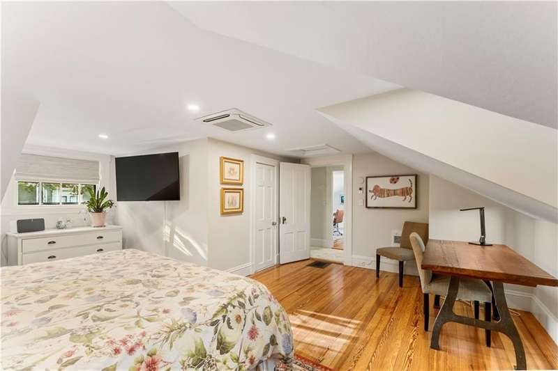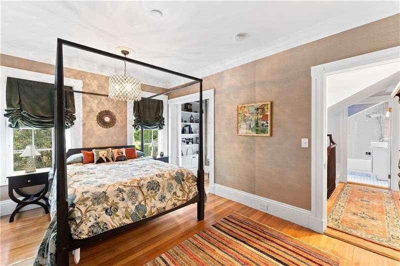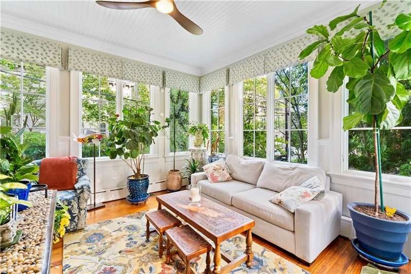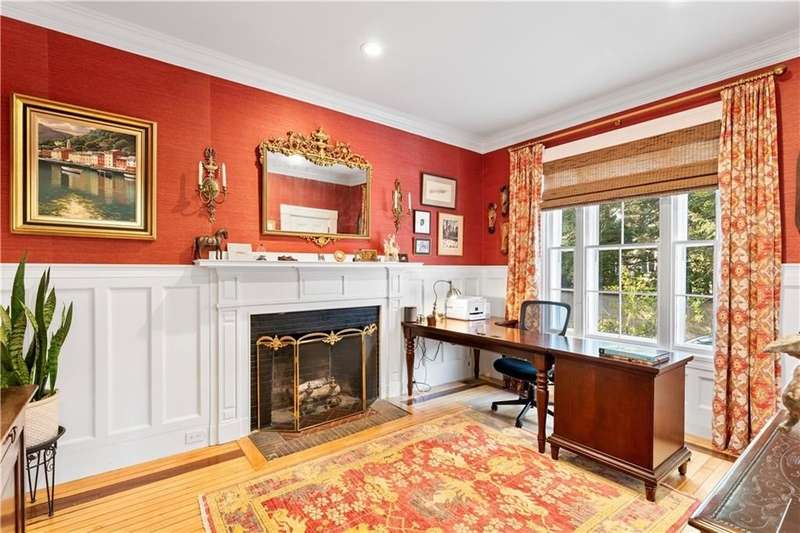Welcome to the fabulous George F. Gladding House! Perched on one of the most prominent spots in Providence’s coveted College Hill neighborhood, this 1845 Greek Revival has been thoughtfully, and thoroughly, updated with an impeccable eye for detail, with gorgeous crown molding and built-ins, soaring ceilings, and tons of historic details – including 7 working fireplaces. From the main entrance, a stately front hall opens onto a front parlor and a private home office with a half bath. The spaciously redesigned living room, with a gas fireplace, wet bar, and fridge, opens to an elegant dining room. An adjacent sunroom offers a quiet retreat, and steps down onto a private, lusciously landscaped private courtyard patio and garden. The stunning eat-in kitchen features radiant-heated Spanish marble floors, high-end appliances, a breakfast nook, and a dedicated mud room. Upstairs, find two primary suites – the larger offering a fireplace, soaking tub, and radiant heat – plus two additional bedrooms, a family bath, and a laundry room. The third floor includes a private guest suite and additional office space. A new HVAC system with central air, as well as new insulation, adds year-round comfort. Located just around the corner from Prospect Terrace Park, and moments from Brown, RISD, and incredible Downtown and East Side shops and restaurants, this truly special home offers the ideal blend of historic charm and modern luxury living in one of Providence’s most desirable locations.