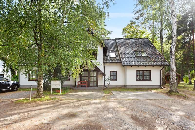 CAPITAL INVESTMENT or OWN USE - Living in nature, only a few meters away from the Scharmützelsee and Glubigsee. Welcome to this beautiful apartment building in Wendisch Rietz. On a plot of approx. 1,040 m² in a natural location in the Siedlung district, just a few meters from Scharmützelsee and Glubigsee, you can expect a total of approx. 262 m² of living space, spread over four separate and well-rented apartments. The property was built in 1999 and is in very good condition. There are two identically designed apartments on the first floor. Each has approx. 72 m² of living space with two rooms, a separate kitchen, a storage room and a daylight bathroom with shower and bathtub. Both apartments have a terrace. On the upper floor there are also two identically designed apartments, each with two rooms, a kitchen, a daylight bathroom with bathtub and a storage room. The top floor can still be converted and therefore offers further potential. The 4 parking spaces in front of the house and the large plot round off this attractive offer perfectly. All apartments are rented and currently generate an annual net cold rent of approx. 25,000 €. One apartment on the first floor will be vacant on October 1, 2024 and can therefore also be used by the owner in the short term. Have we piqued your interest? Then we look forward to hearing from you!
