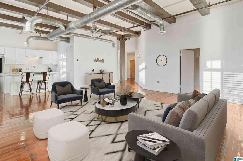 Step into this rare, one-level loft in the historic Liberty Overall Company building'full of character and space! With a little less than 1300 sf, this loft features two generous bedrooms, including custom closets in the second bedroom, and a large updated bath. The open floor plan feels spacious and welcoming, with stunning original hardwoods and beautiful wood beams that bring warmth and charm to the living area. Enjoy three large double-paned windows that open to the west'perfect for letting in that downtown breeze'each with custom shutters. The kitchen is as functional as it is stylish, with granite counters and a layout made for easy living and entertaining. You'll love the secure, indoor deeded parking with convenient access off Morris Avenue. Plus, it's just steps away from the brand-new Amour House steakhouse and minutes from Publix, UAB Hospital, and tons of local favorites. Extras include a new roof (2024), rooftop deck (2022), and low HOA fees. Come experience loft living!