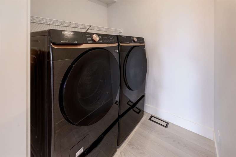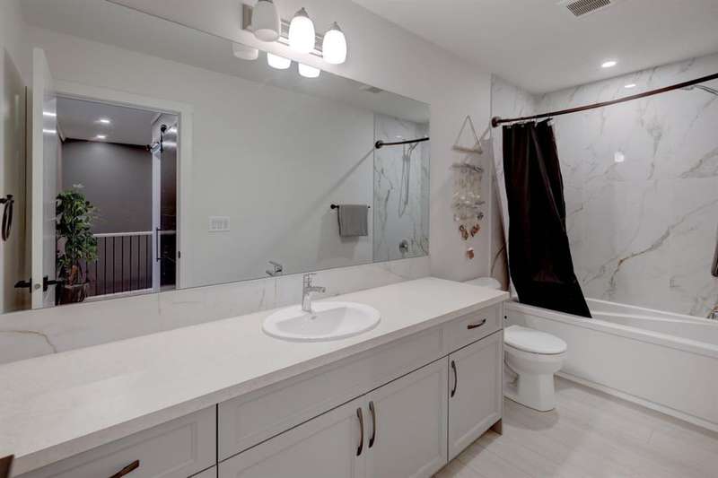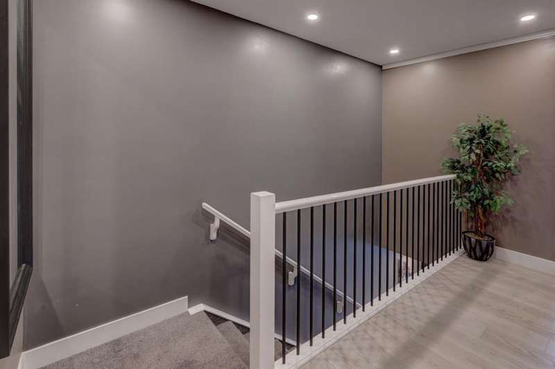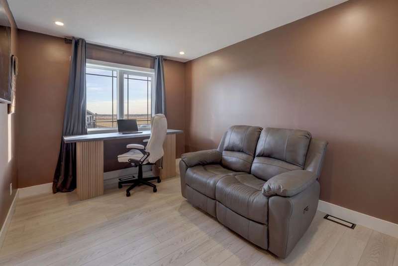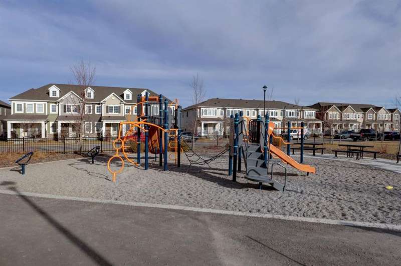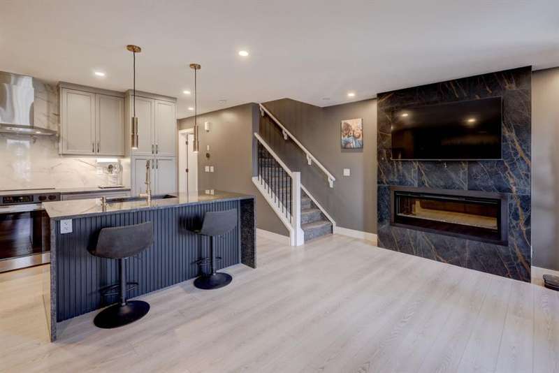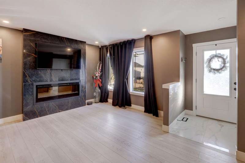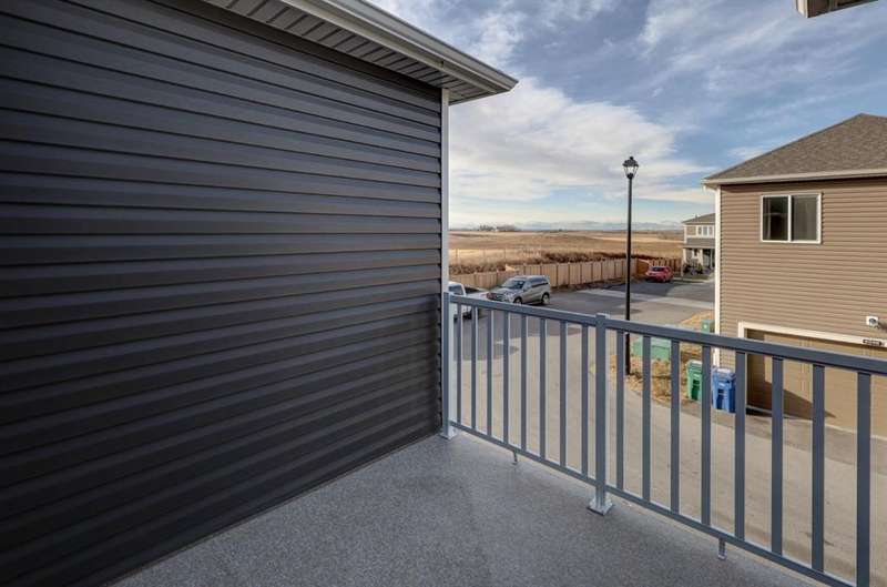 *****OPEN HOUSE Sunday November 30th 1:00 pm to 3:00******Welcome home to this show-stopping townhome in SW Airdrie, perfectly designed for modern living — with no condo fees! Enjoy mountain views from your private patio and every thoughtful upgrade throughout. The main floor features an open concept layout with a chef-inspired kitchen, granite waterfall island, full-height cabinets with valance lighting, and stainless steel appliances. Plus a gas line making a gas stove possible. The living area showcases porcelain tile fireplaces and designer finishes that set this home apart. Upstairs, the spacious primary suite offers a walk-in closet, luxurious ensuite with a floating vanity and motion-sensor lighting, plus a private balcony to take in the mountain views. Two additional bedrooms, upper laundry, and a full bath complete the level. Downstairs you’ll find a beautifully finished basement with a wet bar and brand-new mini fridge, perfect for entertaining. Other highlights include sound and safe party-wall insulation, R80 insulation value, 48 pot lights, 48"x24" tile in baths and mudroom, TV walls in all bedrooms and living spaces, exterior garage plugs, and a second hose bib. Double garage, landscaped yard, and a location steps from parks and new schools make this home the full package. Move-in ready and truly upgraded to the max!