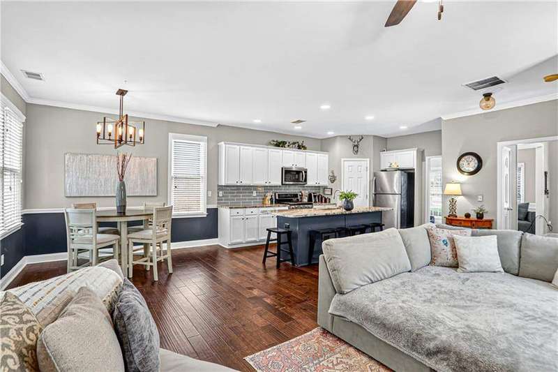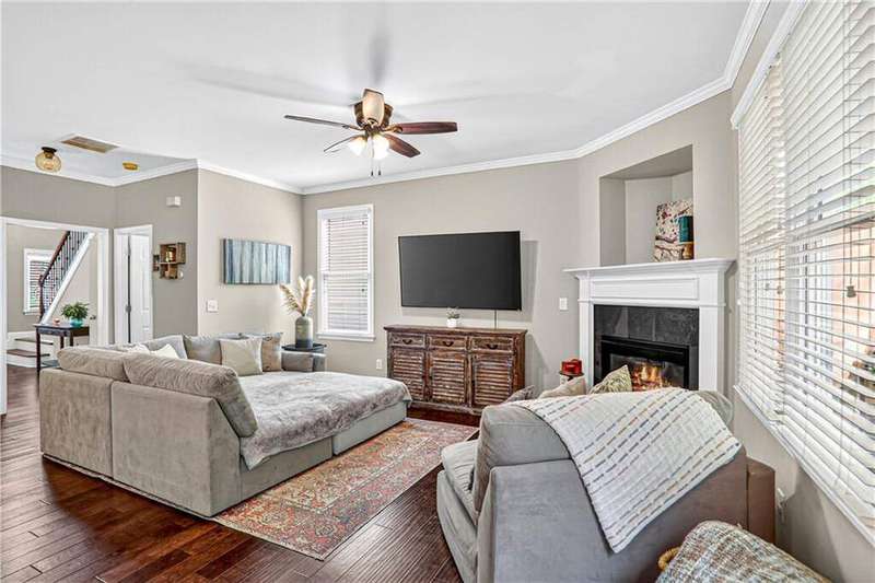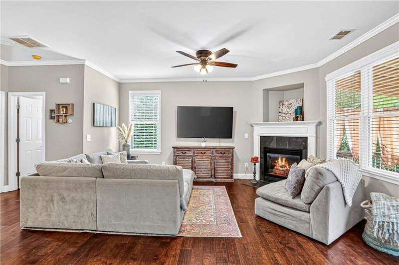 Discover this enchanting Craftsman-style home nestled just minutes from downtown Acworth's inviting community and historic charm. Freshly painted inside, it welcomes you with warmth and character. The interior offers three spacious bedrooms upstairs and a basement with ample opportunity, fireplace, and two car garage. Step onto the covered back deck with sleek metal roofing-the perfect outdoor retreat. A covered terrace patio with a refined metal ceiling provides a bright and protected extension of living space. Venture into the landscaped backyard, where a stone fire pit and intimate sitting area make evenings magical and memorable. Combining architectural charm with thoughtful modern upgrades and an unbeatable location near shops, lakes, parks, and dining-this home is a rare find and a true gem. Charleston Park offers a quiet neighborhood with a full playground and nature trails perfect for exploring all that Acworth has to offer!