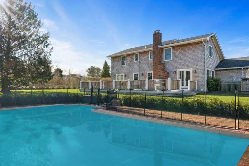 RP# 231067. This newly-renovated home is located in a quiet neighborhood, just minutes from Southampton Village and ocean beaches. The first floor boasts a spacious living room, separate sitting area, an open kitchen with dining area. Both sitting and dining rooms lead out to a spacious deck overlooking the pool. In addition to a generous master bedroom suite, the upstairs features 3 nicely-decorated bedrooms and 1 bath. The property sits amidst a shy acre on a quiet cul-de-sac. Listing ID: 861250