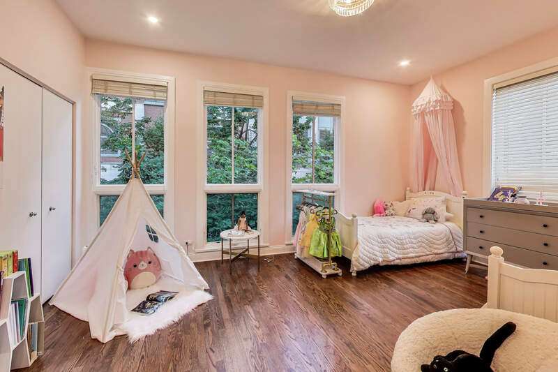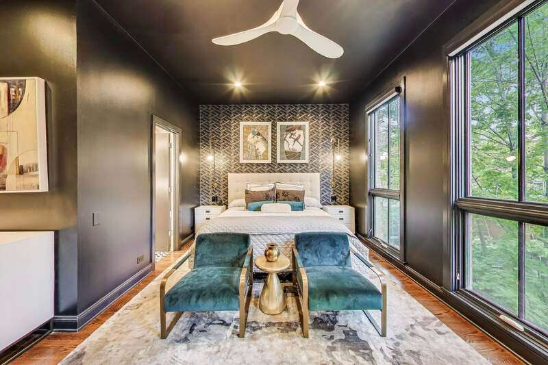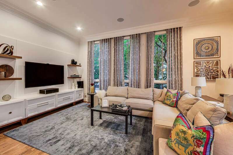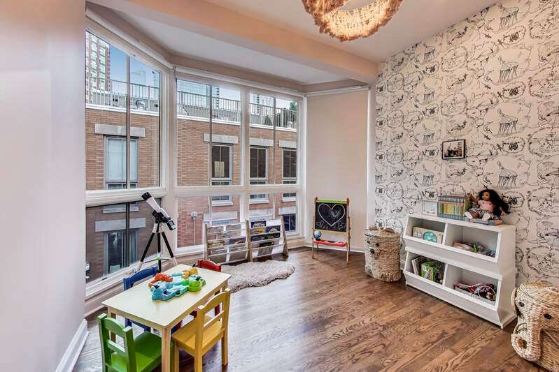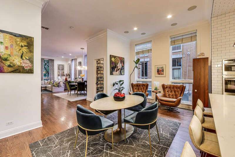 A rare offering in the heart of Streeterville, this four-story end-unit townhome combines the scale and privacy of a single-family residence with the convenience of a premier downtown location. Encompassing approximately 3,600 square feet, the home features four bedrooms, three and one-half baths, and an attached heated two-car garage, all set on an extra-large floor plan facing a quiet, tree-lined street. An open-concept second level is defined by soaring 11-foot floor-to-ceiling windows, a gas fireplace, remote-controlled blinds, fully automated AV and a flexible living/dining space ideal for everyday living and entertaining. The chef's kitchen has been thoughtfully updated with new appliances, refinished cabinetry, a generous pantry, and a wide balcony for grilling or gatherings. Multi-room speaker surround sound system on Sonos network and integrated smart-home features, including Alexa-controlled lighting, further enhance the experience. The primary suite offers custom built-ins, a walk-in closet, and a spa-style bath with a soaking tub, separate glass shower, and double vanity. A first-floor ensuite suite provides flexibility for guests or extended family. Additional features include new hardwood floors, a finished mudroom, newer furnace, AC, and water heater. The crowning feature of the residence is a private wraparound Trex rooftop deck, newly completed in 2023, with sweeping city views-perfect for entertaining, gardening, or quiet relaxation above the city. Located just blocks from the Magnificent Mile, the Lakefront, River Walk, Navy Pier, Ogden Slip, and Chicago's finest dining, shopping, and cultural attractions, this home represents a rare opportunity to own both space and lifestyle in one of the city's most dynamic neighborhoods.