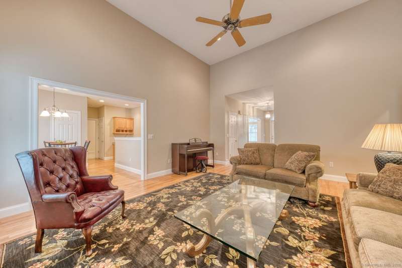 Welcome to 9 Parsons Court - a stunning 3 bedroom 2.1 bath ranch nestled on a quiet cul-de-sac in one of Manchester's most desirable neighborhoods. This beautifully maintained home combines classic charm with elegant details throughout. The spacious living room features a striking granite fireplace, perfect for cozy evenings, while the formal dining room is enhanced by crown molding, chair rails, and wainscoting, creating an inviting space for entertaining. Two bedrooms share a convenient Jack and Jill bathroom, and the primary suite offers a private, well-appointed bath for added comfort. Step outside onto the deck and take in the peaceful views of the private backyard - your own retreat right at home. If more space is needed, enjoy a large unfinished lower level, perfect for storage or to finish for additional living space! With additional features including central air, gas heating, and a 2 car attached garage, this home will meet all your needs and exceed your expectations. Don't m