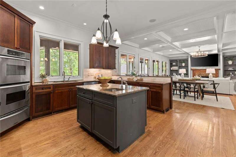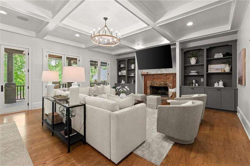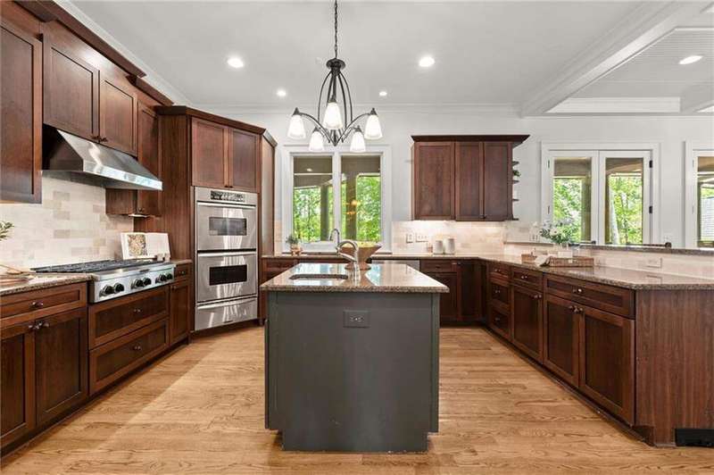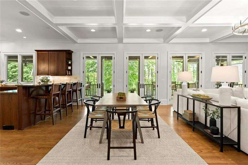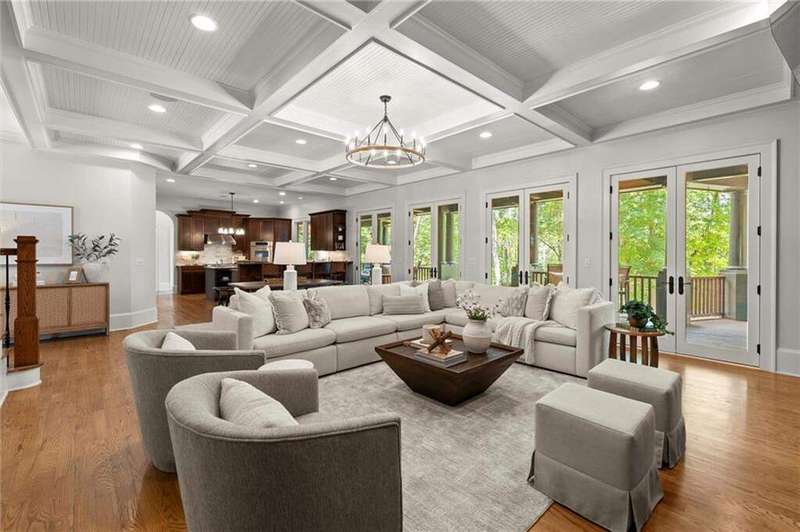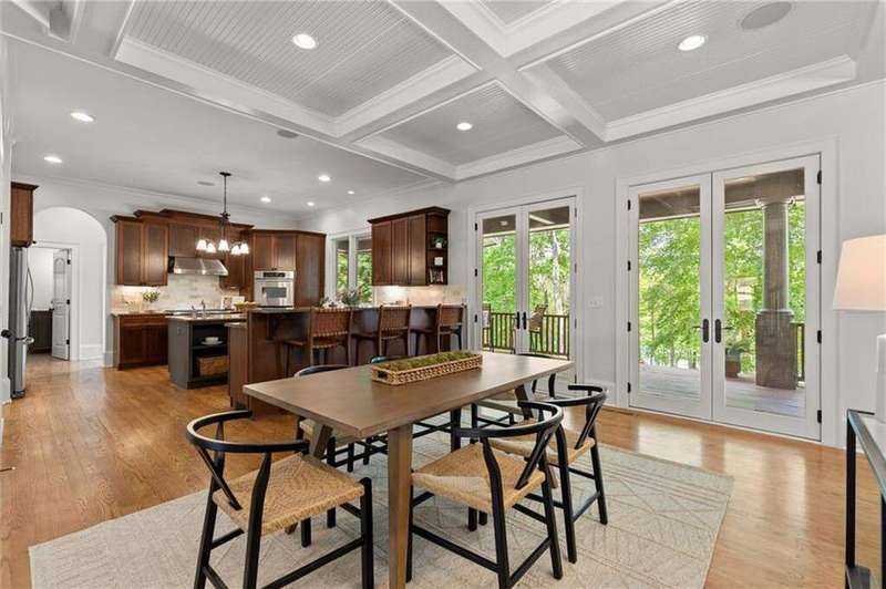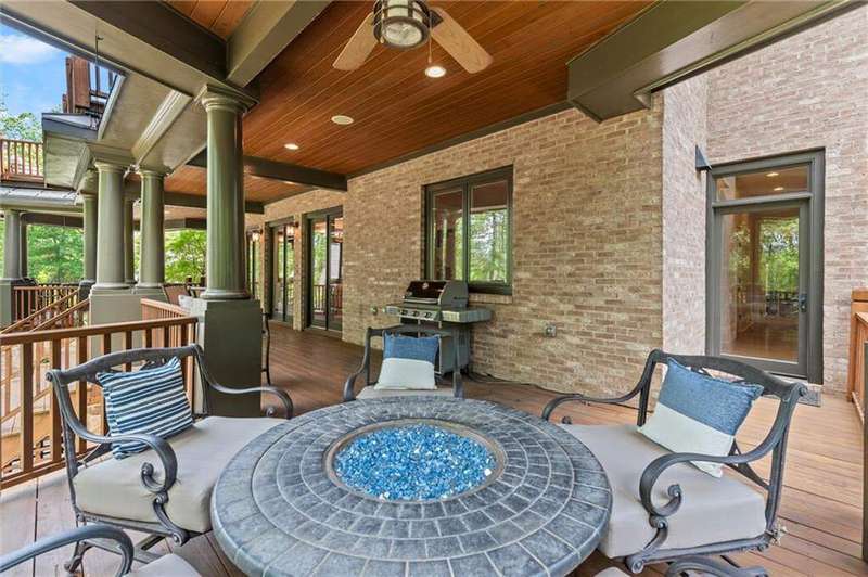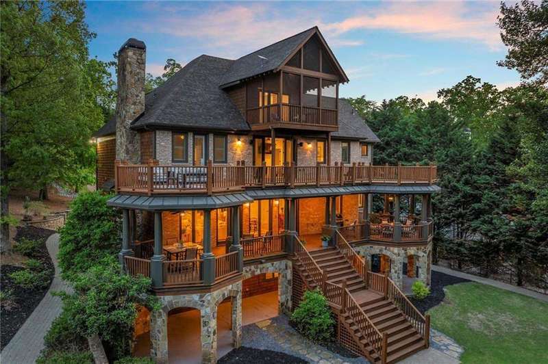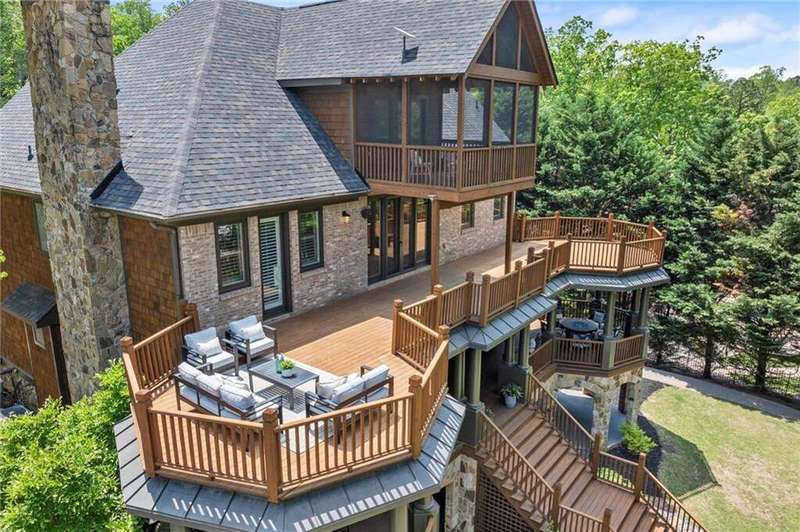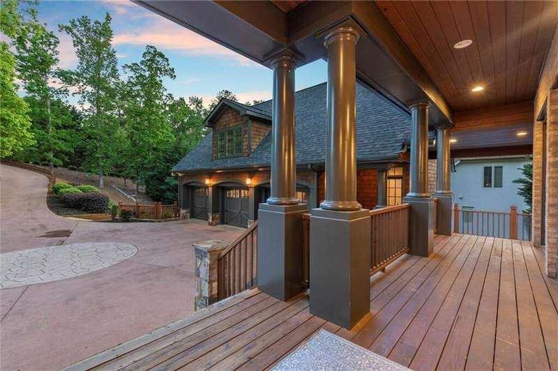 Live the ultimate lake life in this exquisite custom-built craftsman estate in a top-rated school district, boasting 100 feet of prime Lake Lanier shoreline, a double-slip partially covered private dock on year-round deep water with a jet-ski lift, and an over water party deck perfect for relaxing or entertaining by the water. Set on a gently sloping lot with a flat back yard, the home offers panoramic lake views from all 4-levels of luxury living and showcases exceptional outdoor living with expansive wraparound decks and a stunning stone patio that flows seamlessly toward the dock path. Crafted with timeless cedar, stacked stone, and brick, this residence impresses from the moment you arrive and even has it's own private sports court. Upon entering through the wood and glass double statement doors, coffered ceilings and custom built-ins define the main living space, while a formal dining room connects to the chef's kitchen through a wet bar butler's pantry. The kitchen features a walk-in pantry, breakfast area, and an additional flex space just behind it ideal for a drop zone after lake outings or as a second pantry. A spacious main floor bedroom with a private en suite bath adds convenience and flexibility for guests, multigenerational living or for a great home office. The main floor also boasts a laundry room & additional full bathroom for guests. Designed for multi-level entertaining, the finished terrace level is a dream-complete with a large living space with plenty of room for sofa, a pool table, a poker table, a sauna, ping pong & whatever else you can dream up. There's also a home gym, a guest suite with full bath & it's own private entry, and direct access to the lake, flat backyard, firepit & dock path from the terrace level as well as an exterior storage space featuring a workbench. Upstairs, the oversized primary suite is a private retreat with its own expansive deck overlooking the water, spa-inspired bath, & a huge bonus room attached. Two more bedrooms complete this level, while the fourth floor offers a versatile bonus room with full bath-perfect as an additional bedroom, media room, or office. A separate 3-car garage connected by a covered breezeway offers potential for an income-generating apartment or private guest quarters. Professionally landscaped grounds include an outdoor basketball court and space to add a pool, elevating the estate feel. This one-of-a-kind Lake Lanier estate blends luxury, comfort, and unbeatable lakefront access-designed for those who want to enjoy every moment of lake living. Discover the unparalleled lifestyle that comes with living on the breathtaking shores of Lake Lanier, where everyday feels like a vacation. This stunning lake is not just a picturesque backdrop; it's a vibrant community hub that offers an array of year-round activities for residents and visitors alike. Imagine waking up to the soothing sounds of water lapping at the shore, enjoying morning coffee with panoramic views, and having endless opportunities for outdoor adventures right at your doorstep. From boating and fishing to hiking and picnicking in the nearby parks, Lake Lanier offers a perfect blend of relaxation and recreation. Adventure awaits at Lanier Islands, where the thrilling water park provides endless fun for families and friends, featuring exciting slides, a lazy river, and sandy beaches perfect for sunbathing. With your boat docked just steps from your home, you can effortlessly cruise to popular lakeside restaurants for a dinner, where you can enjoy lifestyle music with your friends and family. Embrace a lifestyle filled with sun-soaked days spent on the water, cozy evenings by the firepit, and a lake community that cherishes the beauty of nature. Living on Lanier means not just finding a home, but discovering a vibrant way of life that celebrates both adventure and tranquility. This truly is the perfect place to call home.