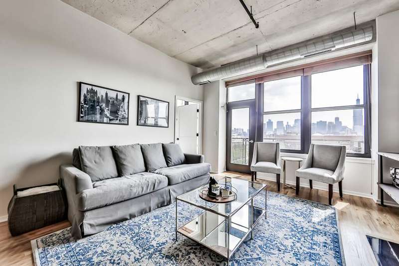 Experience luxury living in this stunning 2-bedroom, 2-bathroom loft situated in the highly coveted West Loop neighborhood of Chicago. Enjoy uninterrupted skyline views from the east-facing windows of this expansive unit, which boasts one of the largest 2-bedroom layouts in the building. The open-concept living space easily accommodates a dining area and features elegant natural oak hardwood floors. The updated kitchen is a chef's dream, showcasing modern white cabinetry with sleek black hardware, quartz countertops, a subway tile backsplash, and stainless steel appliances. The second bedroom/home office includes two full walls of closets, while the primary suite boasts an impressive walk-in closet designed to accommodate even the most extensive wardrobes. Both bathrooms have been beautifully upgraded with contemporary white vanities, premium black fixtures, and modern lighting. A heated garage parking space is included in the lease. Located within the top-rated Skinner West Elementary district, this prime address places you in the heart of West Loop and Fulton Market, surrounded by world-class dining, nightlife, shopping, and more. With convenient access to 290, 90/94, steps to the Ashland Green/Pink Line station, and nearby Skinner and Union Parks, this loft offers unparalleled convenience and an unbeatable urban lifestyle