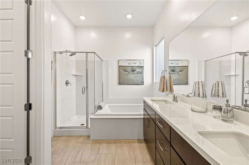 Discover 52 Reverie Heights Ave, a stunning modern home in the desirable Lake Las Vegas community. Completed in 2022, this 4-bed, 3-bath property offers 2,281 sqft, including an attached casita! Inside the main home, enjoy a warm family room centered around an elegant electric fireplace—ideal for cozy nights in. Both the main and casita kitchens are outfitted with striking quartz countertops and stylish backsplashes. The private casita has its own entrance and garage, making it perfect for guests, multi-gen living, or rental use. The seller also has $3,500 worth of pool renderings, should the next owner wish to add a custom pool to enhance the property further. LLV residents enjoy exclusive amenities: pools, tennis, a fitness center, and golf membership access. Plus, the buyer will receive a waived $25,000 LLV Sports Club fee—a rare advantage! Don’t miss this opportunity to own a move-in-ready retreat in one of Vegas' premier resort-style communities.
