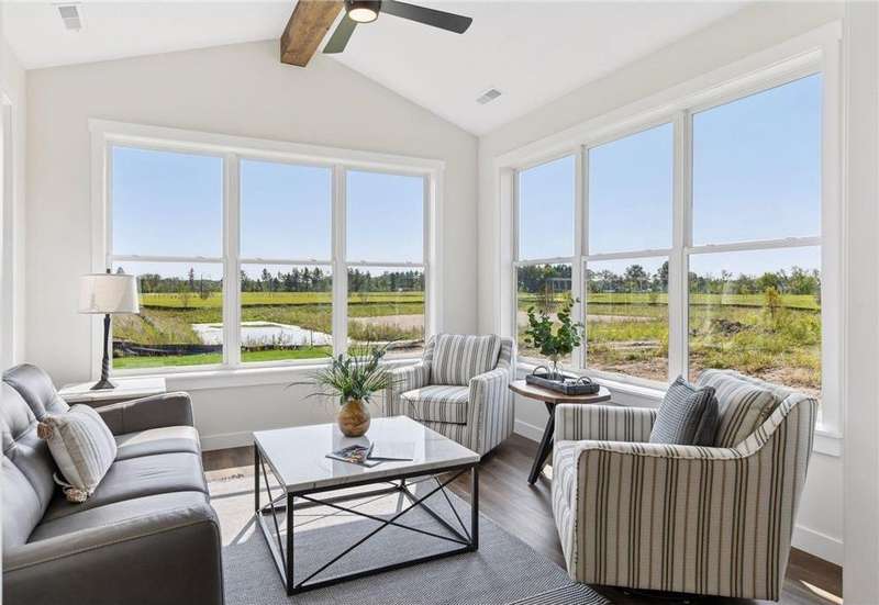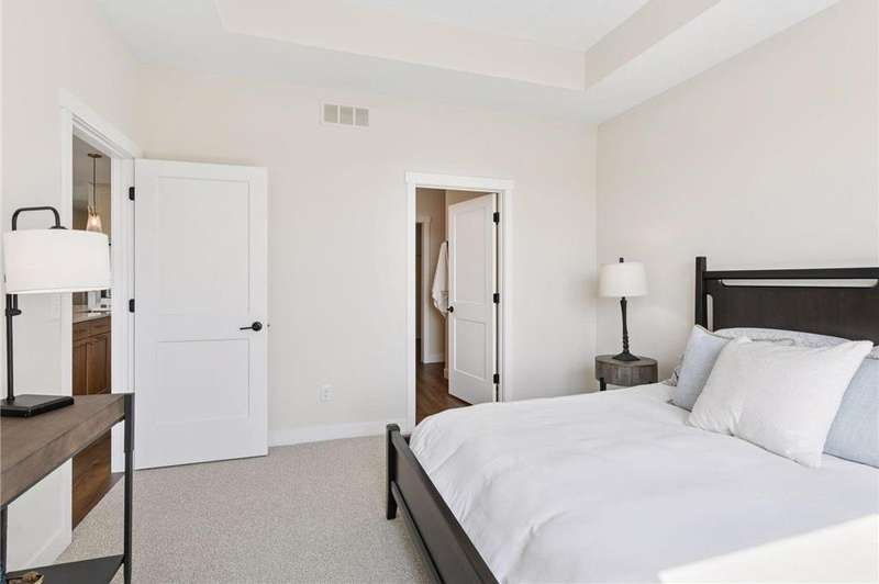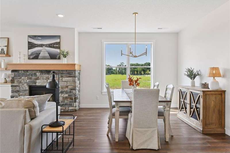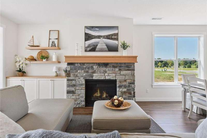 Welcome to Francois Fields, New Richmond’s premier new development! Discover this stunning 2-bedroom, 2-bathroom twin home, thoughtfully crafted by Derrick Custom Homes and featuring the all-new St. Thomas slab-on-grade floor plan. Designed with elegance and comfort in mind, this home showcases high-end finishes throughout, including custom red oak cabinetry extending to the ceiling, under-cabinet lighting, tile backsplash, and quartz countertops in both the kitchen and bathrooms. The spacious kitchen also includes soft-close drawers, stainless steel appliances, and a generous center island, ideal for entertaining. The open-concept main living area is anchored by a cozy gas fireplace, while the sun-filled four-season room offers a bright, inviting retreat. The luxurious primary suite features a private bath with a walk-in shower, dual-sink vanity, and walk-in closet. Additional highlights include a second bedroom perfect for guests or a home office, a full guest bathroom, a dedicated laundry room and mudroom, durable, energy-efficient 2" foam insulation beneath the finished slab, and an attached two-car garage with ample storage. Enjoy a low-maintenance lifestyle with lawn care and snow removal covered by the homeowner’s association. Don’t miss this opportunity to own a brand-new, move-in ready home in one of New Richmond’s most desirable communities. Schedule your private showing today!