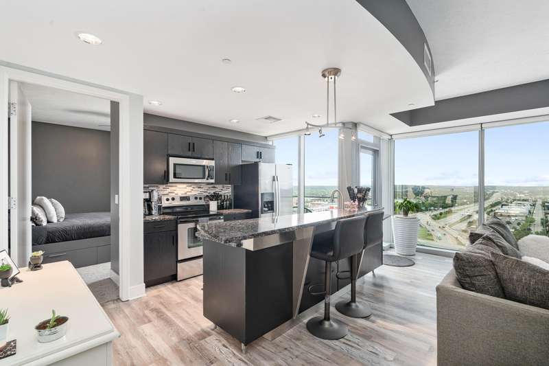 Fantastic condo in the sought after River House Condominiums! This condo is situated on the 17th floor with exceptional views from the floor to ceiling windows. The unit boasts hardwood flooring, granite counter tops, stainless steel appliances. Amenities include 24/7 Security/concierge, indoor pool and hot tub, fitness center and club room. 2 parking spots and additional storage are included! The unit shows like new!! Call today for a private tour.