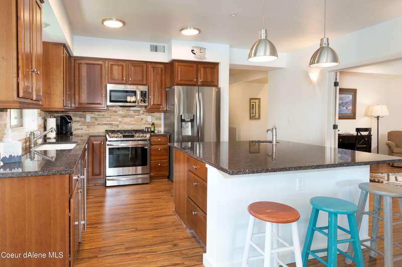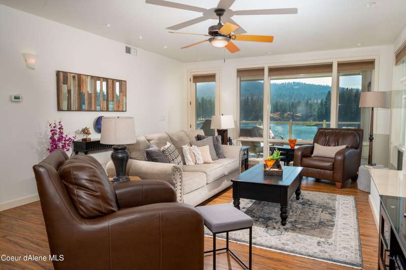 Luxury Waterfront Condo on the Spokane River! Absolutely stunning River Views. Desirable corner unit condo has 2,115SF with 3BR/2BA plus office all on one level. Remodeled and comes Fully Furnished! Elevator is short 50 ft from front door. Located in gated community with maintenance free living. Across the river is Q'emiln Park- a 78.5 acre park with 40 acre trail system, a community beach and boat launch. Nearby is the marina, restaurants and Falls Park with newer amphitheater overlooking the river. Kayaking, boating, bike riding, hiking and entertainment right out your door! Many Upgrades: Newer stainless steel appliances including dual fuel range/oven and wine fridge! Newer interior paint, laminate and tile flooring throughout and newer carpet in bedrooms. Many amenities including gas fireplace, large kitchen island, granite countertops, central air, 2 decks & sun screens. Detached oversized 1 car garage with lift. Check for boat slip availability for seasonal lease through Rivers Edge Marina