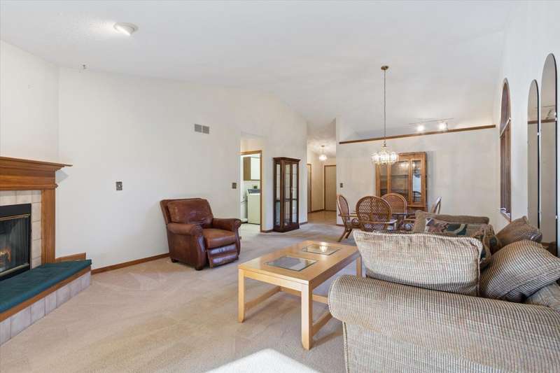 Welcome to this beautifully maintained ranch-style condo offering the perfect blend of comfort and convenience. Featuring 2 spacious bedrooms and 2 full bathrooms, this home is designed for easy one-level living. The bright and open great room boasts vaulted ceilings, creating an airy, inviting atmosphere ideal for both relaxing and entertaining. The primary suite includes a generous walk-in closet and a private full bath, while the second bedroom is perfect for guests or a home office. Enjoy the ease of a first-floor laundry room, and take advantage of the full, unfinished basement-perfect for storage or ready to be finished for additional living space. The attached 2-car garage offers even more convenience and storage. Located in a quiet, well-maintained community, this condo is ideal for anyone seeking low-maintenance living without sacrificing space or style.