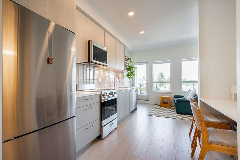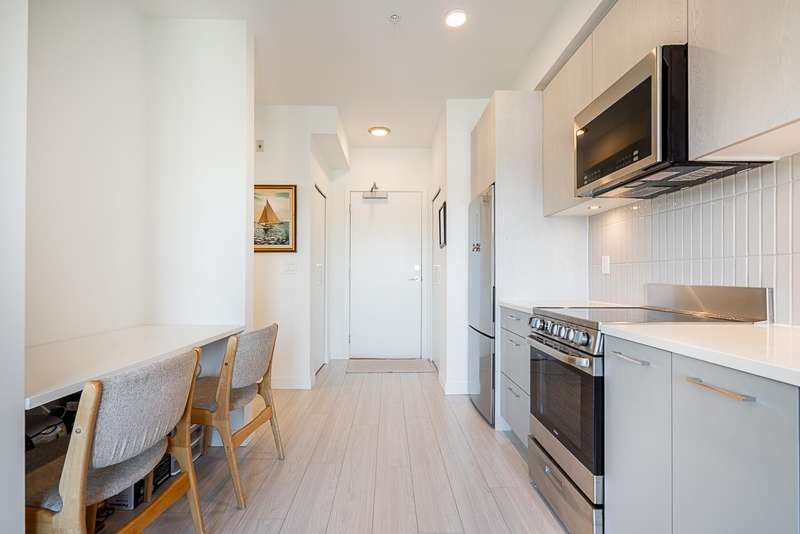 Welcome to QS in North Surrey. This beautiful and bright studio unit features one bathroom, one storage locker, and no parking. It offers an open-concept layout with quartz countertops, a built-in nook, wide plank laminate flooring, 8-foot ceilings, in-suite laundry, and a large balcony that walks out from the living room with a mountain view. Amenities include a gym, lounge, party room, barbecue area, and playground. It’s a very central location—just minutes away from the SkyTrain. Forsyth Road Elementary School is about a 15-minute walk, and École Kwantlen Park Secondary is approximately a 15–20-minute walk. There’s also easy access to the Patullo Bridge and Highway 1, which are about a 5-minute drive away. Open House August 30 (Saturday) from 1:00-4:00