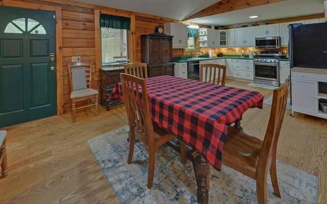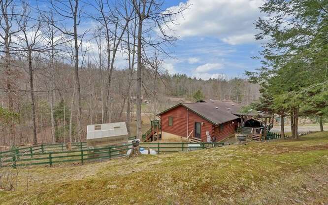 Just Reduced!! Priced Below Market Value! Generac Generator Included. A separate downstairs entrance allows for potential apartment and rental income. Priced below appraised value! This stunning 3-bed, 3-bath log home in the desirable Tarheel subdivision offers the perfect blend of rustic charm and modern convenience. Set on just over an acre with a creek running through the property, it features vaulted ceilings, warm wood walls, and a cozy fireplace in the great room. The dedicated dining room is ideal for gatherings, while the master suite opens directly to the deck for seamless indoor-outdoor living. The fully finished basement includes separate living quarters and an oversized two-car garage, adding versatility and storage. Outside, you'll find multiple decks, a covered porch, and a fenced area for dogs. With paved road frontage, fiber optic internet, and no HOA fees, this home offers both privacy and convenience. Just a short walk to downtown Murphy's shops, restaurants, and entertainment, this home delivers mountain living at its finest.