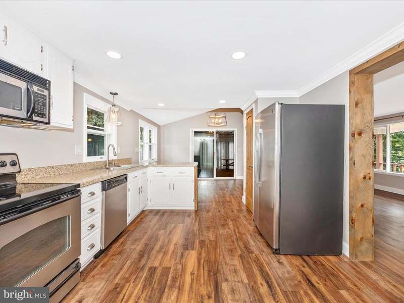 This large 3-bedroom home sets at the end of a long driveway where you can park in your 2-car garage. You'll enjoy the privacy given by all the mature trees situated along with board of the 1-arce+ property. The house has many unique feature including a vaulted ceiling in the living room. Many updates have been recently made which includes the roof and laminate floors. You enjoy having breakfast in the sunroom or the open concept dining area that is ideal for entertaining. If you like to cook (and even if you don't!) you'll love the stainless steel appliances, ample storage, and counter space galore. You might decide you never want to leave the sunroom with its ceiling fan and lovely view. The primary bedroom is made into a special retreat by its crown molding, natural light, large walk-in closet, and the attached bathroom with lots of storage and counterspace. Relax in the large shower. You have room for your family or an office in the two extra bedrooms. Your tour is not over yet! The lower level of the home features a family room equipped with a wood burning fireplace that you can cuddle in front of on chilly evenings, full bath rough in located in lower level which will be the third bath. Love the outdoor life? Have a fun time on the patio where you can soak your stress away in a hot tub. You don't want to miss seeing this one-of-kind property that you could make your home. This one won't last long so be sure to schedule a showing today.