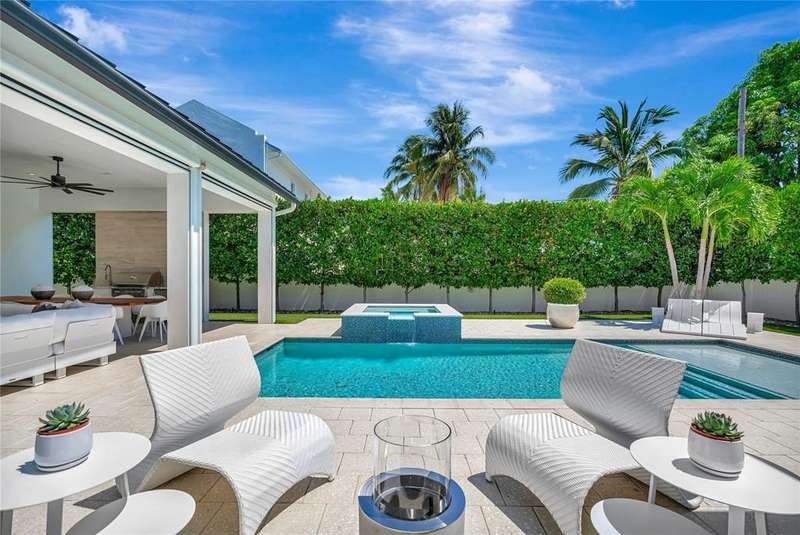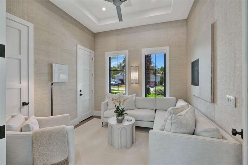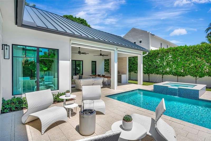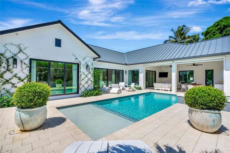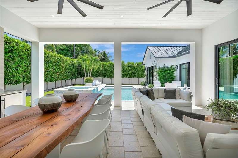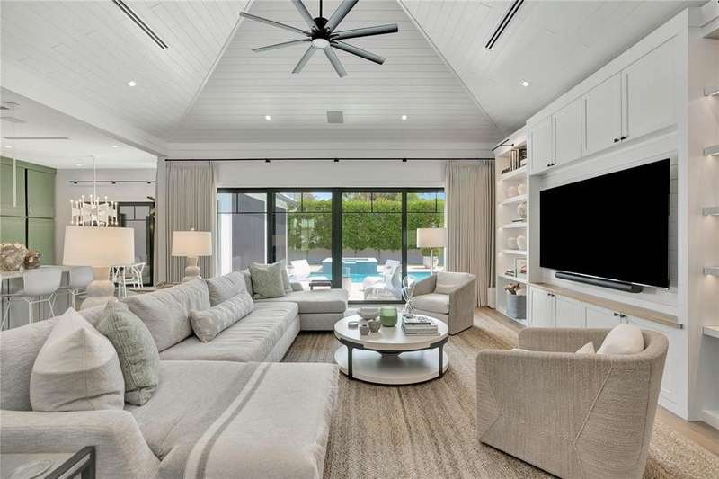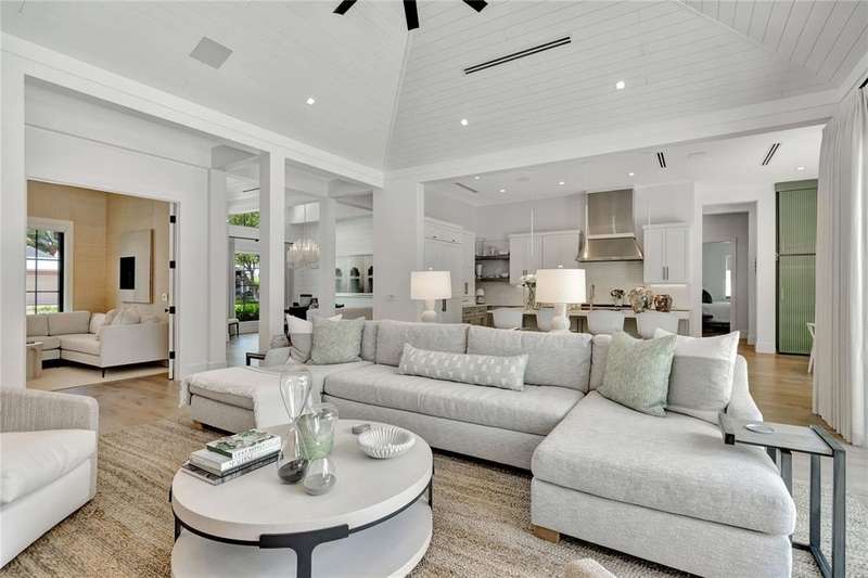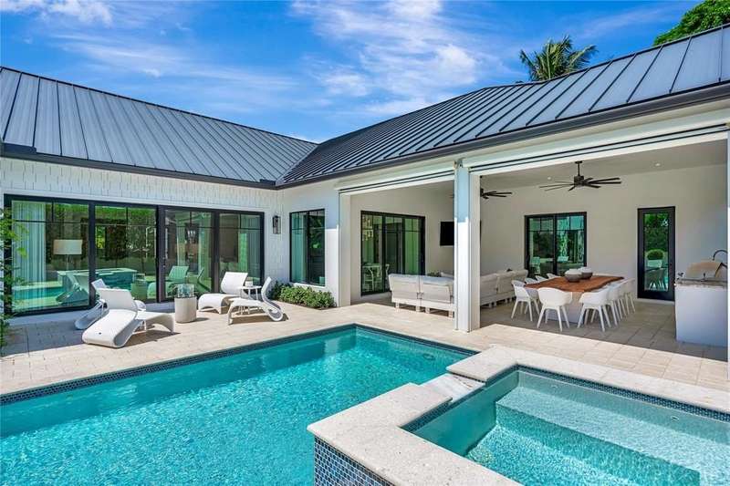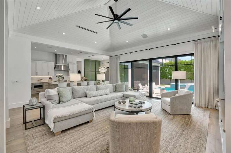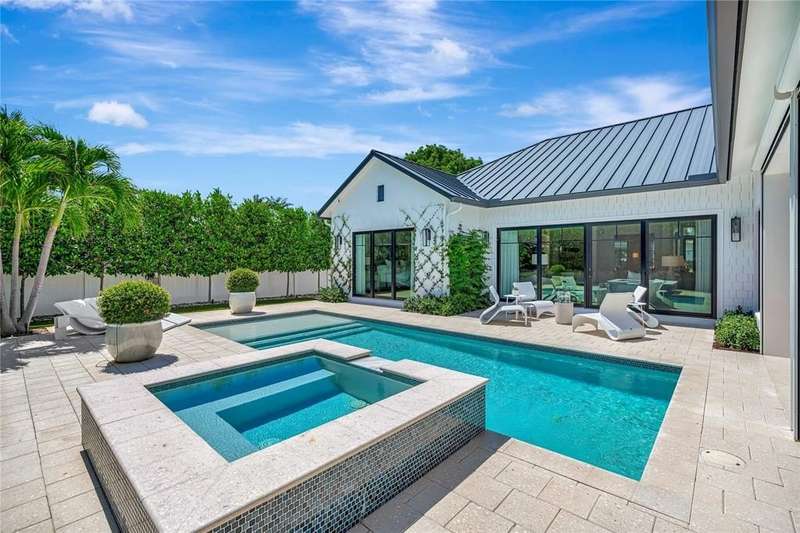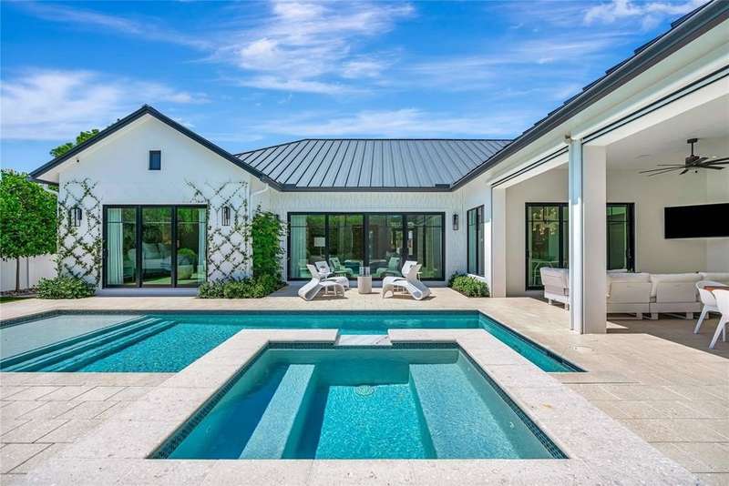 This residence embodies style, comfort, and location — a rare opportunity to enjoy modern farmhouse living just steps from Delray’s vibrant Atlantic Avenue and beautiful public beaches. Built in 2020 and fully upgraded, this single-story home features 4 bedrooms, 4.5 baths, and over 3,600 SF under air. Vaulted ceilings and wide-plank hardwood floors create an inviting, sophisticated atmosphere, while custom high-end finishes elevate every room. In Fall 2024, the outdoor spaces were professionally redesigned to seamlessly extend the home’s elegant interiors. Relax in the heated saltwater pool with sun shelf and waterfall spa, rinse off in the outdoor shower, and entertain with ease in the large screened loggia complete with a full summer kitchen.