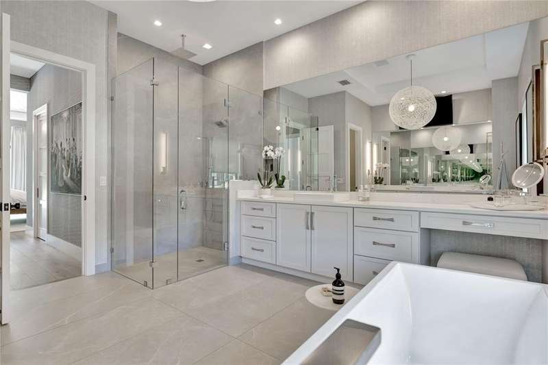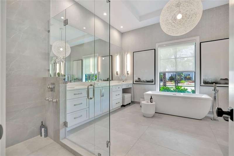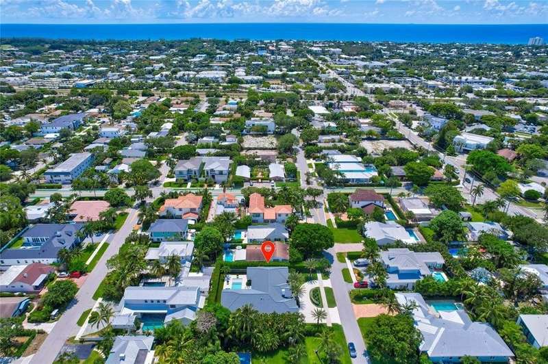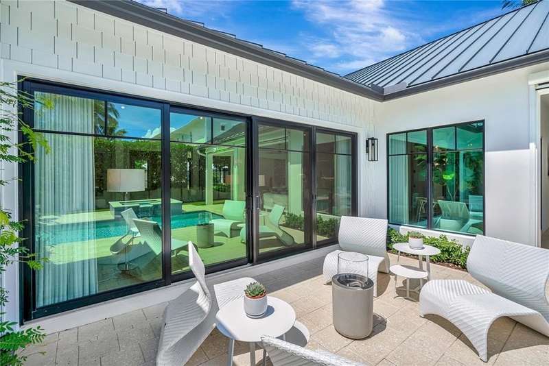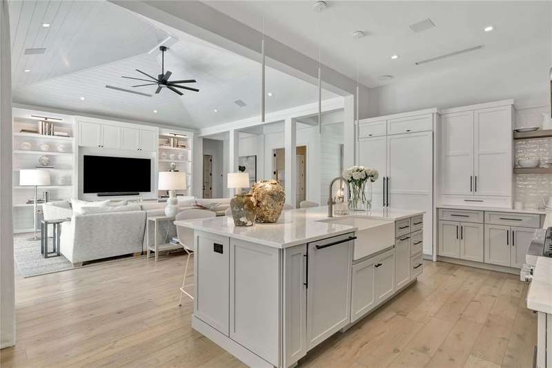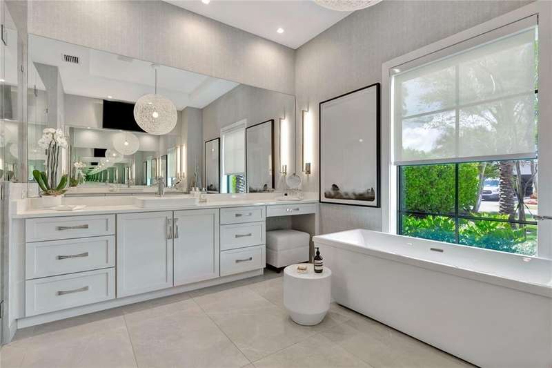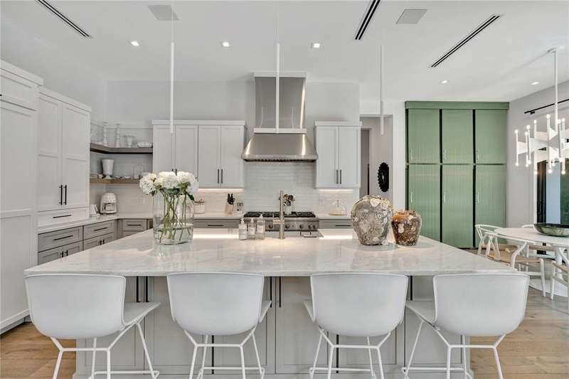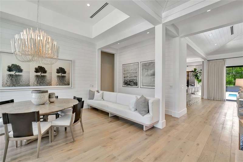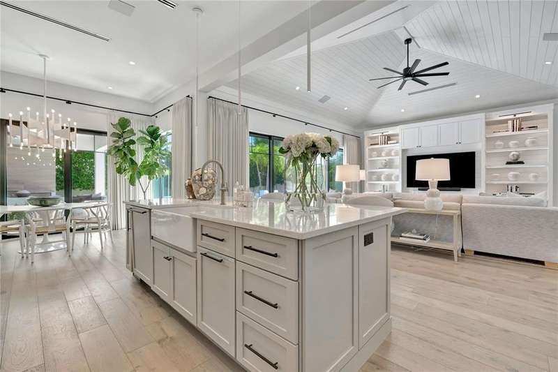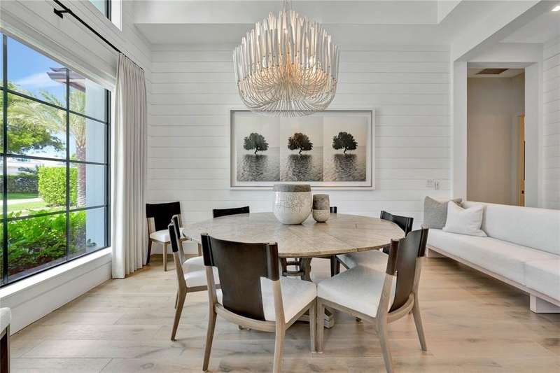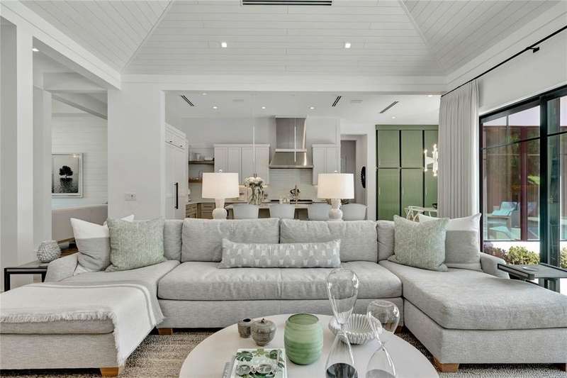 This residence embodies style, comfort, and location — a rare opportunity to enjoy modern farmhouse living just steps from Delray’s vibrant Atlantic Avenue and beautiful public beaches. Built in 2020 and fully upgraded, this single-story home features 4 bedrooms, 4.5 baths, and over 3,600 SF under air. Vaulted ceilings and wide-plank hardwood floors create an inviting, sophisticated atmosphere, while custom high-end finishes elevate every room. In Fall 2024, the outdoor spaces were professionally redesigned to seamlessly extend the home’s elegant interiors. Relax in the heated saltwater pool with sun shelf and waterfall spa, rinse off in the outdoor shower, and entertain with ease in the large screened loggia complete with a full summer kitchen.