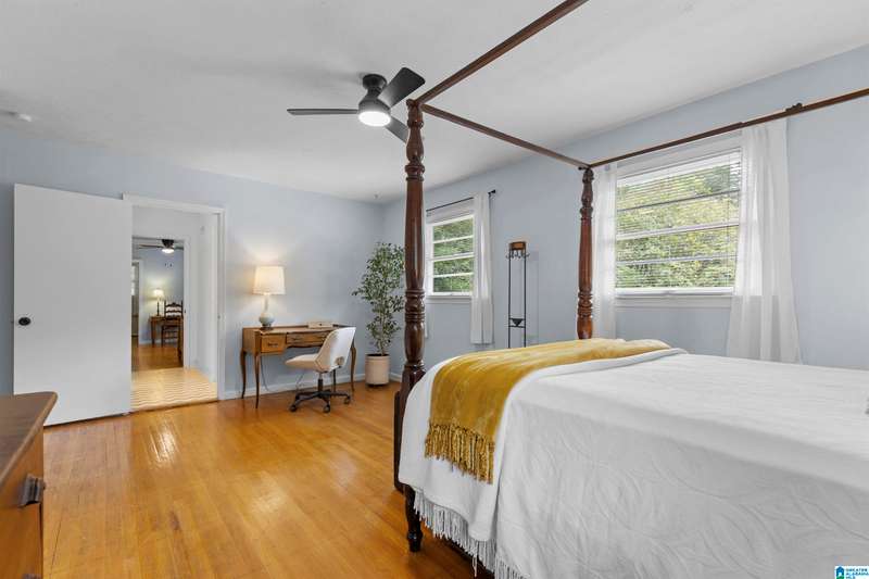 Discover this stunning 4-bedroom, 2.5-bath home in the desirable Country Club area, situated on almost an acre lot. Hardwood floors flow throughout this spacious layout, including a large kitchen with plenty of cabinet space, counter space, & brand-new stainless steel appliances. Other updates include new light fixtures, new ceiling fans, & 2020 painted interior. The dining room easily accommodates a large table—perfect for hosting holidays & gatherings—while the bonus room opens to a back patio for seamless indoor-outdoor entertaining. Upstairs, you’ll find four large bedrooms with two full bathrooms, including the master suite. This home features a 2-car garage on the main level and a 12x16 backyard shed that conveys. Outside, enjoy a peaceful backyard oasis with a private trail and serene Spurlock Springs Creek running through the property. A brand-new 2025 5-ton HVAC system ensures comfort year-round. The perfect blend of location, charm, and modern updates.