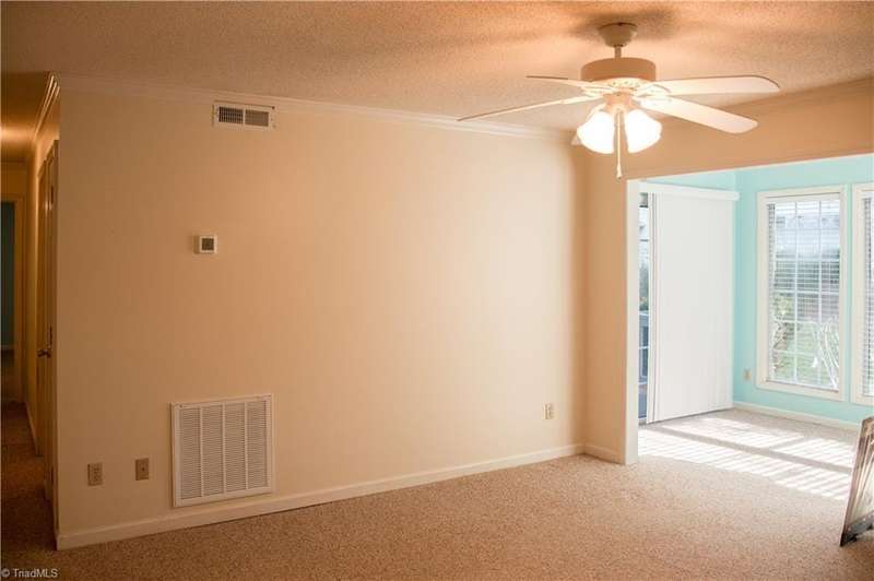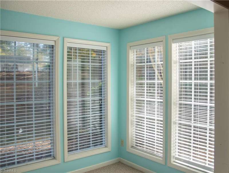 Tons of potential in fantastic location off Country Club Road in the Mayfair neighborhood. Private rear lower unit surrounded by beautiful, well-manicured green spaces and a pool view. Light abounds in this spacious condo with living room fireplace, gorgeous sunroom, roomy master bedrooms, and huge master bath. The unit is handicap accessible, as well, with no stairs and with built-in bathroom grab bars.