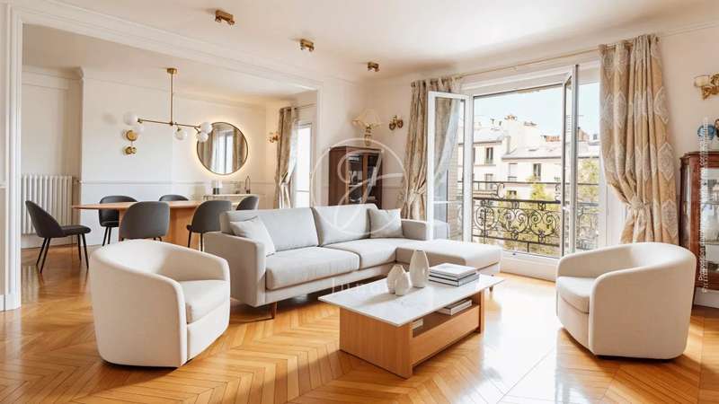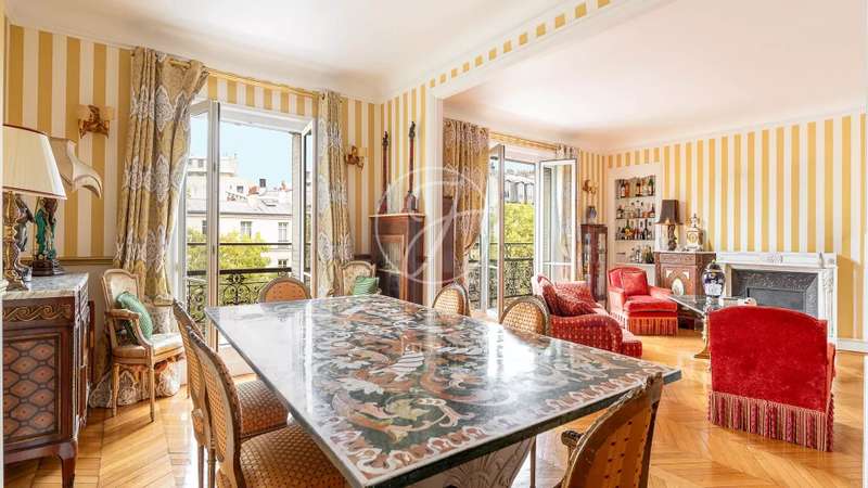 Close to Place des Ternes, in a superb Haussmann building, discover this elegant south-facing family apartment of 152.70sqm Carrez. Located on a high floor with elevator, it enjoys exceptional sunlight and a prime location. The spacious reception room features parquet flooring, moldings and fireplaces. The property also includes a kitchen/diner, a laundry room and three bedrooms, each with its own shower room. Three toilets complete the ensemble. A bright apartment full of character, in one of the most sought-after locations in the 17? arrondissement. A cellar accompanies this offer.