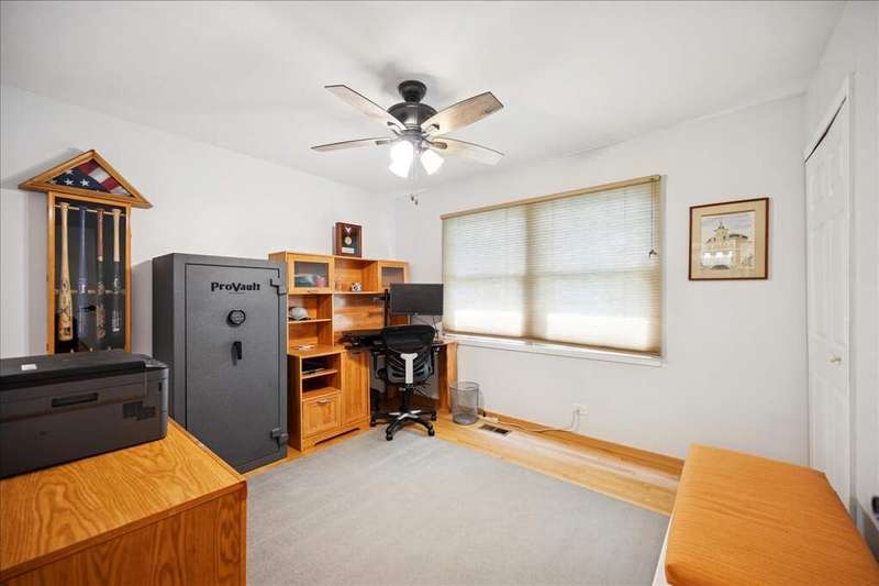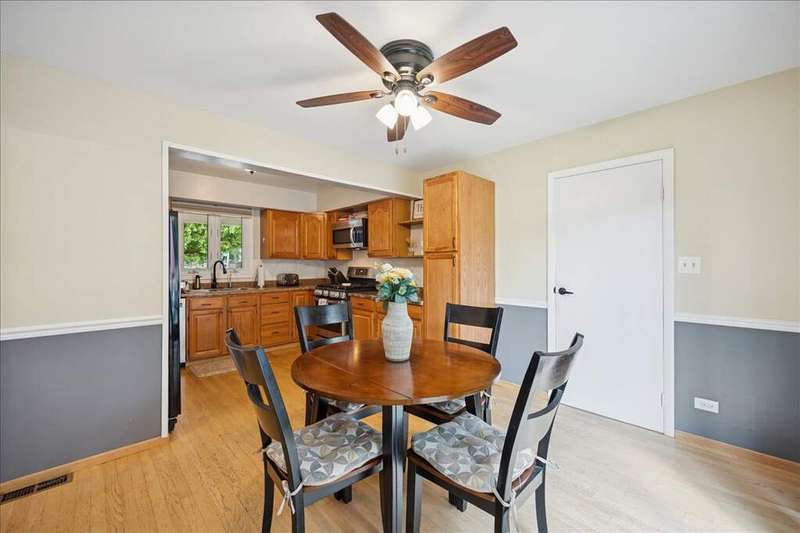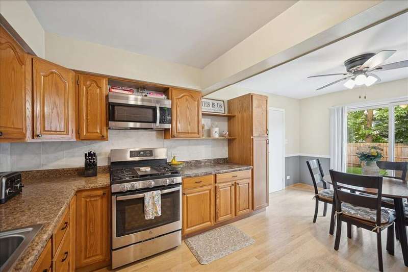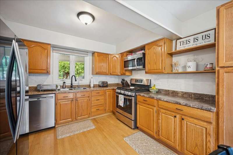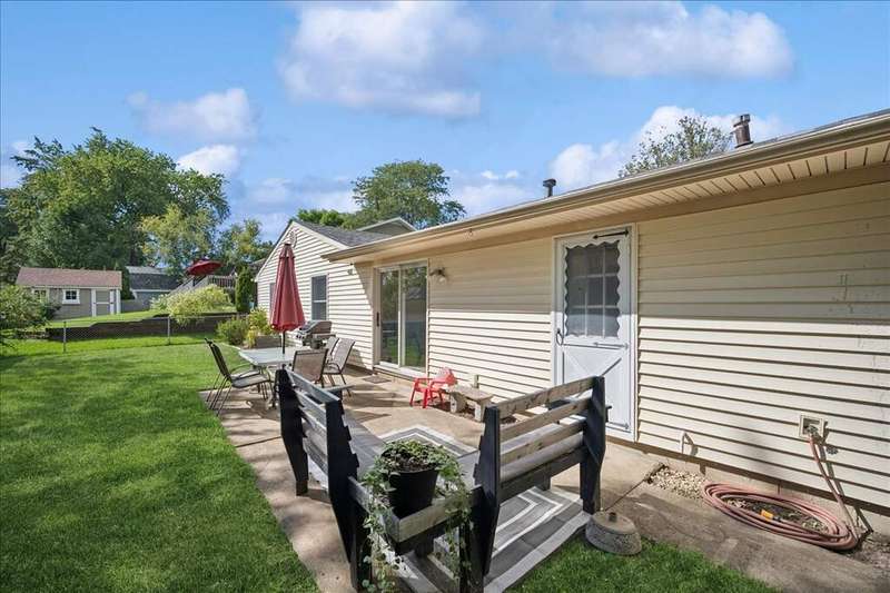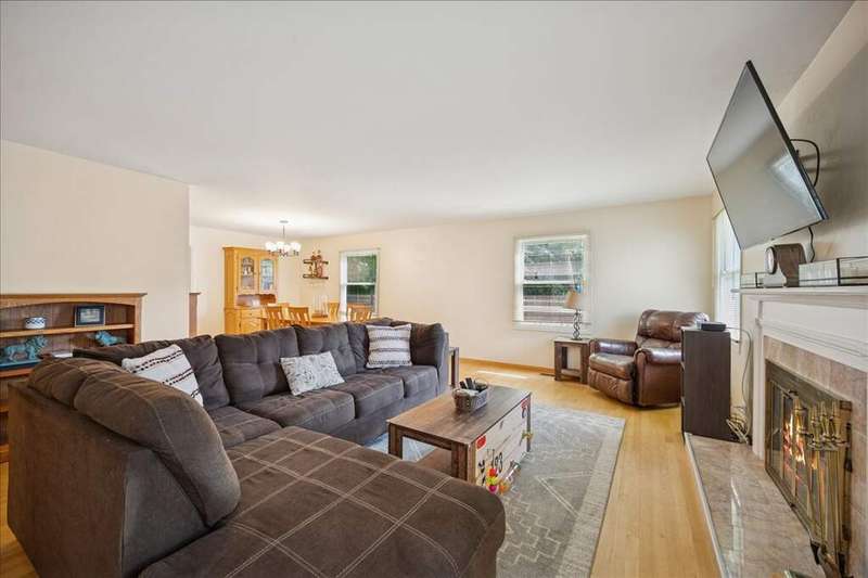 Charming and well-maintained 3-bedroom, 2-bath ranch with an open floor plan and beautifully landscaped yard! Step inside to find gleaming hardwood floors throughout and an inviting L-shaped Living and Dining Room featuring a cozy wood-burning fireplace. The Kitchen offers a separate eating area, pantry cabinet, 5-burner stainless and black stove (new 2019), built-in stainless microwave (new 2019) stainless dishwasher (new 2023) and convenient laundry nearby. Both full bathrooms have been very nicely redone- one in 2021 and the other one in 2024. Enjoy outdoor living in the fully fenced backyard with a concrete patio, newer shed and firepit area - perfect for relaxing or entertaining. The attached 2-car garage includes a small workshop area at the back for hobbies or storage. New furnace and air-conditioner - 2022 and new asphalt single roof - 2024. Located within walking distance to all 3 schools and the neighborhood park. Don't miss this move-in ready gem!