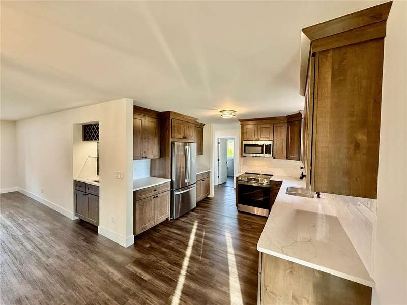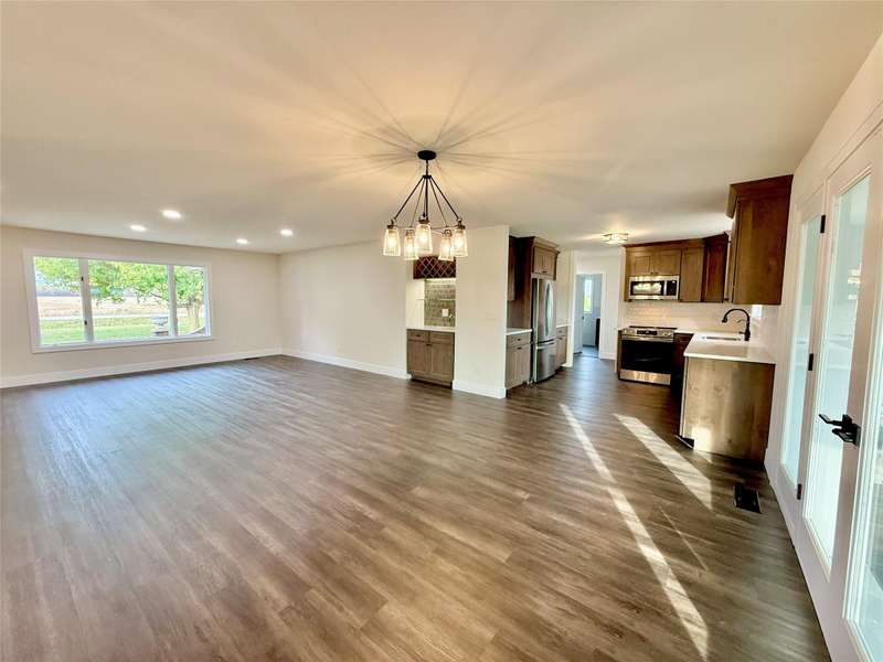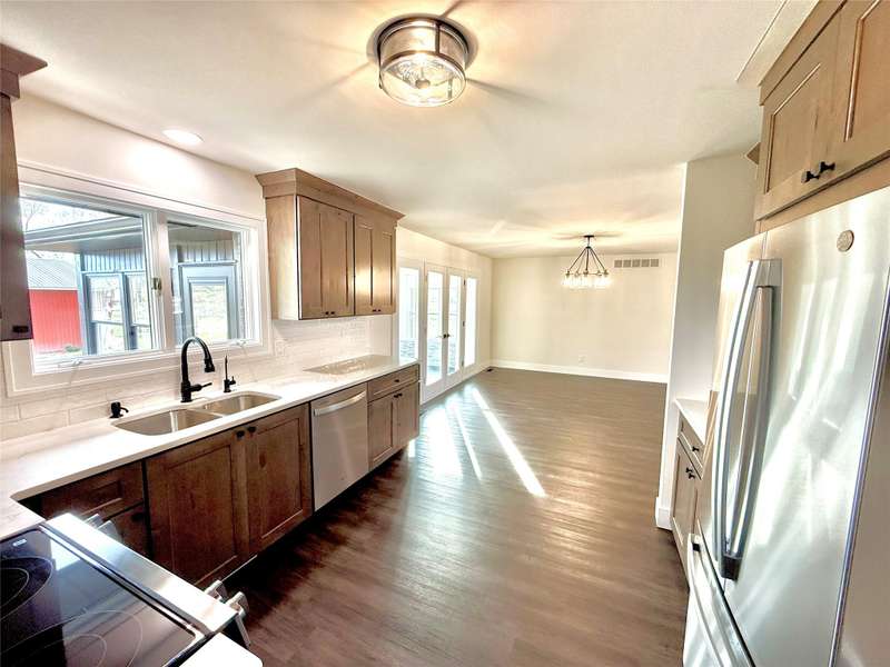 Perfectly situated on a picturesque 2+ acre lot surrounded by mature trees, this beautifully renovated brick ranch blends timeless craftsmanship with modern comfort. From the moment you step inside, it’s clear that no detail has been overlooked. The open, functional main floor features spacious, connected living areas—ideal for both relaxed country living and effortless entertaining. The living room’s original fieldstone fireplace adds rustic charm, complemented by a stunning custom wet bar and an adjoining heated, light-filled four-season room. The brand-new kitchen shines with full-overlay alder cabinetry, quartz countertops, and a complete suite of stainless steel appliances. Every bathroom has been exquisitely recreated with designer tile, premium fixtures, and modern vanities. The main-floor laundry room offers exceptional storage and abundant natural light. Downstairs, a large, dry basement provides endless potential—perfect for a recreation area, workshop, or future finished space. Nearly everything in this home is new: cabinetry, countertops, flooring, fixtures, doors, trim, hardware, and paint. Major system upgrades include a new well pump and pressure tank, owned softener system, blown-in insulation, and conversion to natural gas with a new LNG furnace. Outside, the property offers a generous semi-private backyard and a 1,500 SF pole barn with dedicated electrical service—ideal for hobbies, storage, or small business use. Behind the barn, a sunny, south-facing area awaits your garden plans. The seller will soon replace the culvert and re-gravel the driveway, ensuring the exterior is as turnkey as the home itself. Move-in ready and meticulously updated, this property truly checks every box.