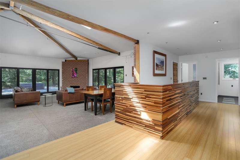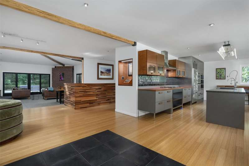 ***Multiple Offers!!! All offers to be submitted by 5:00PM on Monday, September 1, 2025.***. Situated on an elevated 0.91 acre lot, surrounded by mature trees and woodland views, this custom, Mid Century Modern home combines warmth with form and function. The design provides open yet defined spaces utilizing natural materials. The kitchen features a concrete topped island, Wolf range, wall oven, warming drawer, Asko dishwasher, and a Sub Zero fridge. The heated bamboo flooring in the kitchen continues to a sitting area with fireplace adjacent to the kitchen. Tall, beamed ceiling, exposed aggregate flooring, fireplace, and dramatic use of brick define the Great Room. Multiple door walls open to patios and foster outdoor/indoor living. The spacious primary suite with framed views of trees and direct access to a secluded patio is complemented by an organized closet system and a double sink vanity. Two other bedrooms, both of which are large, and one with an en-suite bathroom, plus a full bath in main hall complete the south wing portion of the house. A powder room and laundry room are located on the north side of the main floor. The lower level provides direct access to the 2 car attached garage. A separate, enclosed area can serve as a 4th bedroom (egress window). This space is complete with kitchenette (fridge, sink, d/w & micro) and a full bathroom. Perfect for in-law/guest suite, studio… Additional features: Standing Seam Metal Roof, Clopay insulated glass garage doors, irrigation system, 48 kw Generator, French Drain system, newer electrical, Crestron system: Climate, Security & Audio. Bloomfield Hills public schools. Private beach access/lake privileges available through Lone Pine Association located on east shore of all-sports Walnut Lake.
