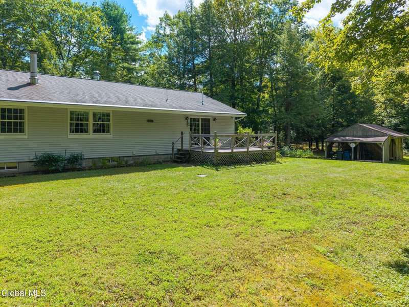 Welcome to this spacious 3 bedroom ranch with a dedicated home office/or 4th bedroom, offering comfortable on-level living on a total of 10 beautiful acres. Inside, you will find a large living room with a cozy fireplace, seamlessly open to the dining area-perfect for gatherings and everyday living. The oversized kitchen offers plenty of workplace and storage, while the convenient first-floor laundry adds ease to your daily routine. This property includes 1.5 baths, a versatile outbuilding/barn ideal for storage, hobbies, or animals and sits on 6.3 acres with adjoining 4-acre parcel number: 422089 43.00-2-15.2 included in the sale. Room to roam, grow, or just enjoy peaceful country living. This is the one you have been waiting for!