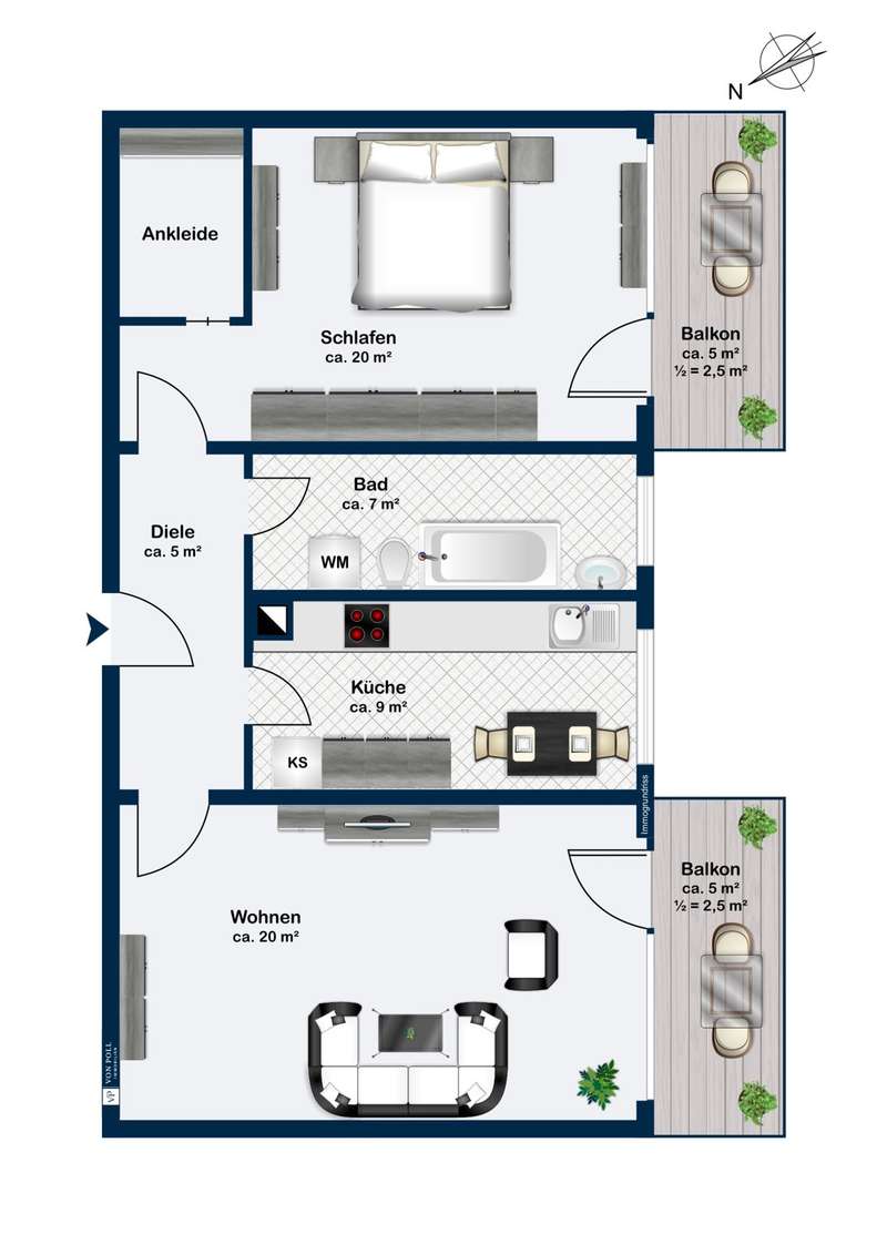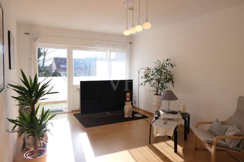 The property on offer here is a well-kept first floor apartment located in an apartment building built in 1972. With a living space of approx. 65.5 m² and a practical room layout, the apartment is ideal for singles, couples or small households looking for a comfortable place to live. The apartment comprises a total of two rooms, including a spacious bedroom with access to balcony 1, which can easily accommodate both a large bed and a closet. The bright and friendly living area invites you to linger and relax and offers enough space for a living area and a dining area. From here you can access balcony 2. The large windows allow plenty of natural light into the room, creating a pleasant living atmosphere. A modern central heating system, which was renewed in 2008, ensures reliable and even heat distribution in all rooms. Extensive modernization work was carried out in 2024, further enhancing the apartment's appeal: the apartment entrance door was replaced and new white interior doors were installed. The fittings in the bathroom and kitchen were also replaced as part of the modernization in 2024 in order to meet current standards. The kitchen offers ample space for preparing meals and is functionally designed. The bathroom is equipped with a bathtub and has space for a washing machine. The contemporary fittings complete the overall picture and make the bathroom a pleasant retreat. The flooring in the apartment consists mainly of easy-care laminate, which gives the rooms a harmonious appearance. The hallway, which connects all the rooms in the apartment, also has a practical layout and offers additional storage space. The apartment also has a cellar compartment, which offers additional storage space and thus keeps the living spaces tidy. In addition, the residents of the building have access to communal areas that are available for use. The location offers good public transport connections and quick access to shopping facilities, schools and leisure facilities. The residential area is characterized by a pleasant infrastructure that easily meets daily needs. In summary, this well-kept first floor apartment, which was last modernized in 2024, offers a solid basis for future living. Thanks to ongoing renovations, the property is in good condition and guarantees contemporary living comfort. A viewing can be arranged at short notice to see the benefits of this apartment for yourself. The stated purchase price of € 155,000.00 refers to the building and the condominium and not to the land. The building was constructed on a hereditary building plot (contract until 2071). An amount (ground rent) of € 75.22 per month, plus the house rent, is payable for this. Summarized: The purchase price of the apartment is € 155,000.00, plus € 277.00 ancillary costs/house charges (incl. maintenance reserve), and plus € 75.22 p.m. ground rent. The maintenance reserve of the community amounts to approx. 93,000.00 € (as of Dec. 2023). The property tax is currently € 174.00 p.a.