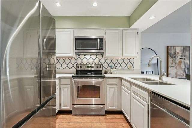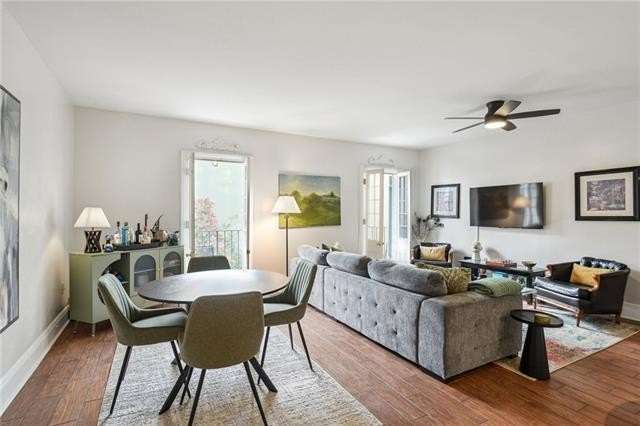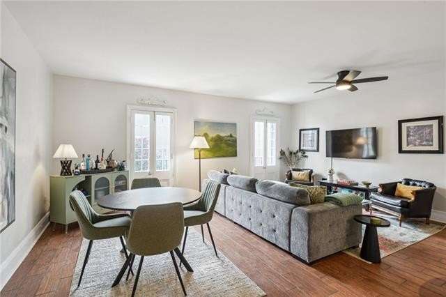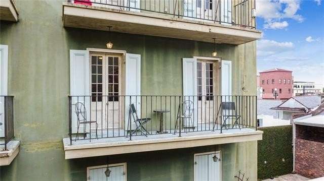 Spectacular French Quarter condo unit in the St. Pierre association; with two spacious bedrooms, private balconies, and gated off-street parking included, this unit offers great value at an even better price! Tastefully updated kitchen with stainless appliances and quartz countertops, including a breakfast bar, which opens to the generous living and dining area. The third floor location provides great natural light and rooftop views through three sets of french doors, complete with balconies for enjoying morning coffee and evening cocktails. Both bedrooms have direct bathroom access and plentiful closet storage, plus the there is an additional half bath + in-init laundry facilities just off the living area. The charming common areas give a truly New Orleans vibe with a beautifully landscaped courtyard and in-ground pool for relaxing on the hot days of summer. Great option for a full-time residence or weekend getaway, just minutes from all the French Quarter and CBD have to offer!
