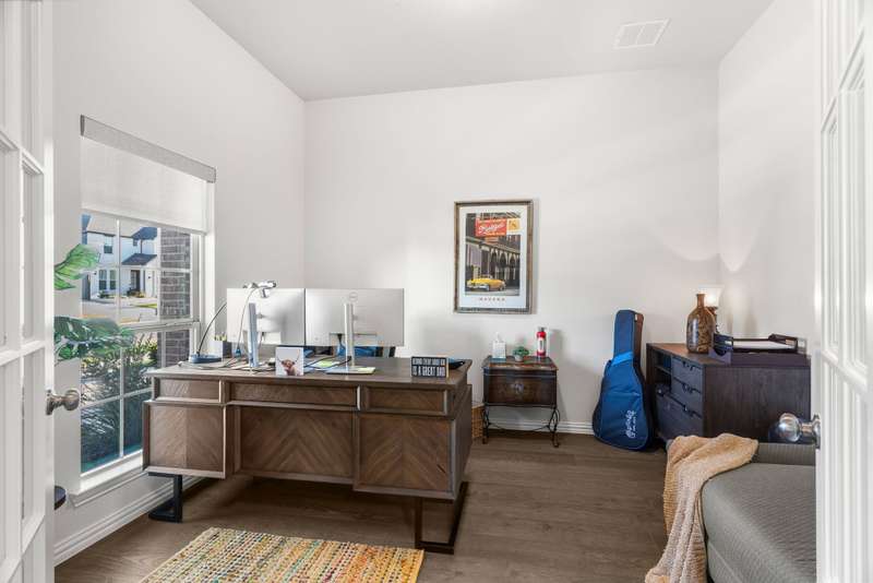 Live beautifully in Lilyana! This 2023 built stunner sits on a generous 60ft lot in highly acclaimed Prosper ISD and delivers the perfect blend of style, space, and convenience. With 4 bedrooms, 3 full baths, and a media room big enough for blockbuster nights, this home was designed for both everyday comfort and unforgettable entertaining. The chef inspired kitchen features striking natural stone countertops and outdoor BBQ are all included. Thoughtful upgrades, modern finishes, and a community filled with trails, parks, and charm this one checks all the boxes. Come see what life in Lilyana is all about.