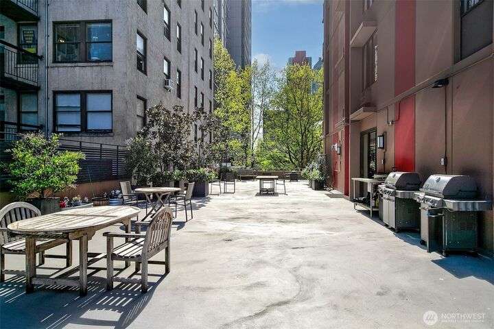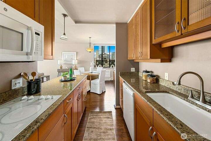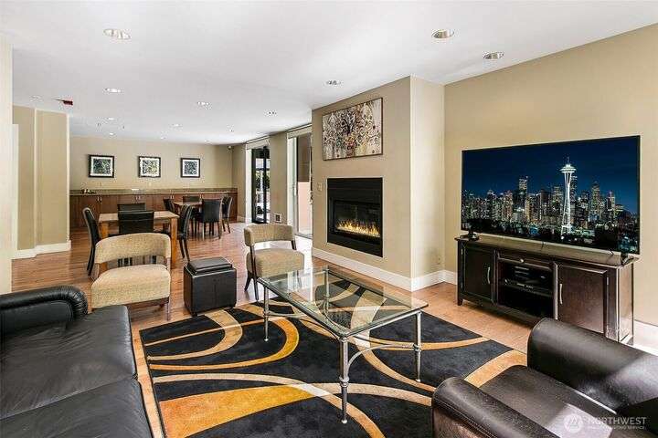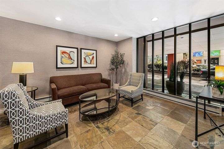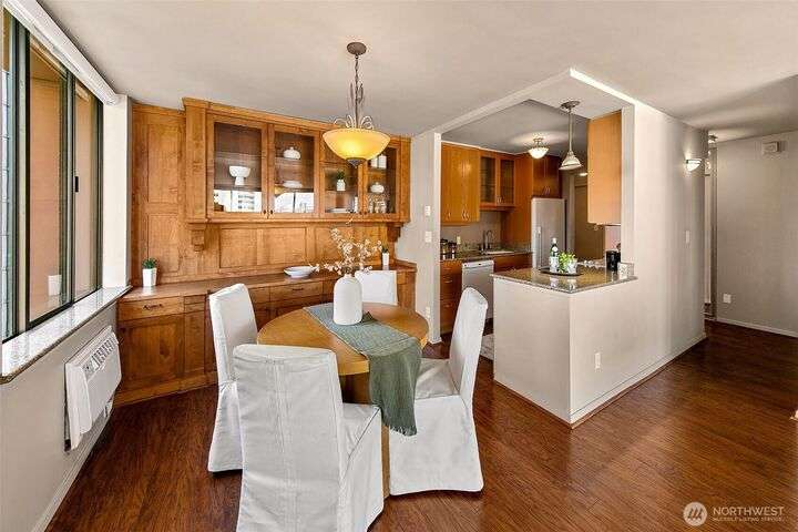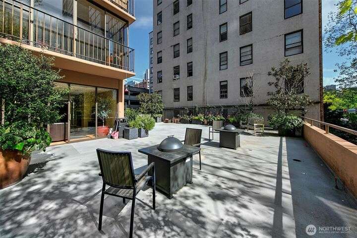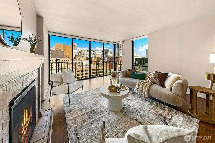 Step into sophistication in this thoughtfully-designed condo in the heart of First Hill. Abundant light + Seattle skyline views from this 2 BD/1.75 BA SW-facing corner unit. Stylish touches incl. hardwood floors, custom kitchen cabinets, built-in buffet, granite counters & modern gas fireplace. 2nd BD/office w/built-in desk + shelves. Everything you need for easy city living: side-by-side W/D, A/C, storage locker & garage parking. This upscale community boasts fitness center, community room, and outdoor terrace with BBQs. 100 Walk Score and easy access to 520 and I-5 for quick trips to SeaTac. Immerse yourself in vibrant city life w/world-class dining, 5th Ave Theater, Town Hall, Pike/Pine nightlife, & more-all just steps from your door.