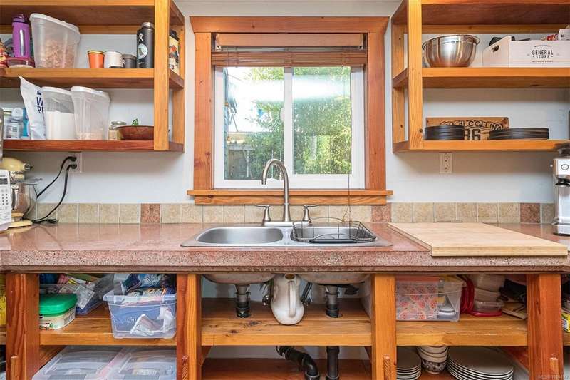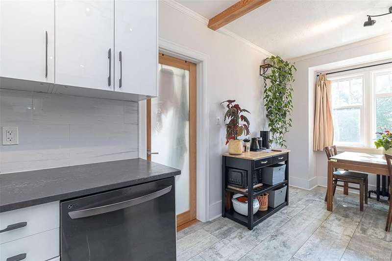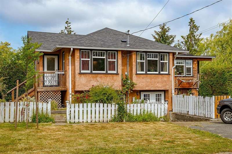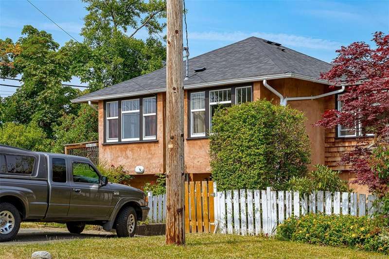 Fantastic Gorge waterway location, in this quickly transitioning neighbourhood, for this wonderful 6,360 sq.ft fully fenced & landscaped corner lot (may qualify for SSMUH zoning) with space for an additional building. This home has been well loved and greatly improved over the years with 3 bedrooms and 1 bath on the 1000 sq.ft. main level, with a light filled and airy character cottage natural feel. Super layout featuring living room with fireplace & separate dining area - both with original wood floors, new kitchen with appliances & lovely sunroom primary bedroom retreat. Home is well equipped & features many expensive upgrades that will benefit a new owner for many yrs - new roof, partial perimeter drains, newer super efficient electric boiler/Hot Water, 200 AMP electrical service, stucco resurfaced, new laundry & new beautiful, 1-bedroom separate entrance quality character suite; completing the lower level. Beautiful yard to relax & garden - perfect for kids, pets or entertaining!