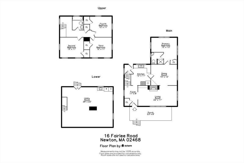 Rare Opportunity for home owners and contractors! In a coveted Waban location, this picturesque Colonial, held in the same family for over 65 years, exudes character and charm. A welcoming front porch opens to a warm, inviting interior featuring a living room with fireplace, formal dining room with wainscoting, china cabinet, crown moldings and French doors. The first-floor addition offers a versatile en-suite bedroom or den, while the second floor hosts three bedrooms and a full bath. Set on a level lot with a lovely backyard and 1-car garage, this home boasts a large unfinished basement and endless potential to make it your own!