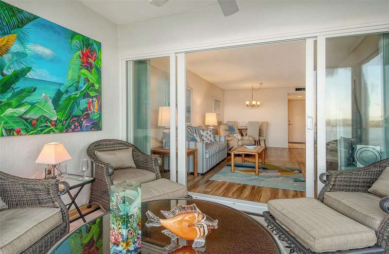 WHOLESALE REDUCED PRICE 1 Huge price reduction! SPECTACULAR FULL SARASOTA BAY VIEW. Well-maintained, Move-In Ready one bedroom in premium A building with NO storm damage. Relax and enjoy coastal living on the enclosed lanai, while watching the sunrise, the beautiful panoramic Harbour water view, dolphins, manatees and sea birds. The community is boater friendly with boat slips that will accommodate a sailboat or power boat up to 34 ft as low as $400 annually on a first come basis. This is a socially active community with amenities galore. Choose one of the four heated pools to enjoy the easy coastal lifestyle, or choose to play pickleball/tennis, kayak, or biking. There is also a spacious well-equipped fitness center, art room, billiard, shuffleboard, putting green, fishing pier and clubhouse with dance floor and catering kitchen for your social gatherings. The gated private beach club with restroom Facilities is available to all residents. The parking lot is located at 4415 GOM Drive and is just a few minutes away. Longboat Harbour is not age restricted and has a no pet policy. New Roof replacement is in process. The assessment has been paid. The kitchen has a built-in cooktop with a convection microwave oven above. The seller offers a home warranty. Now at this low price, you have an option to upgrade this lovely residence to your style and enjoy as your island home away from home! Don't wait any longer.