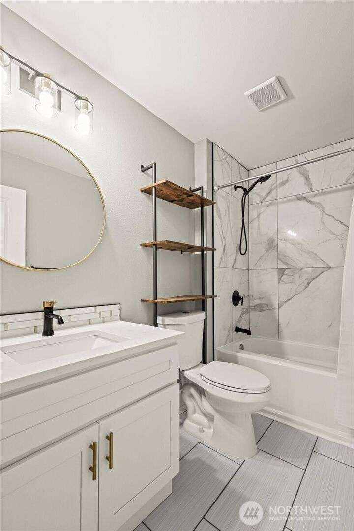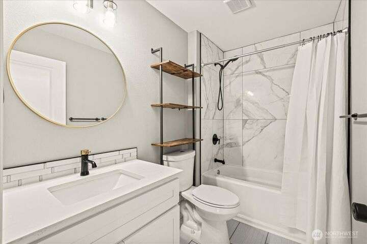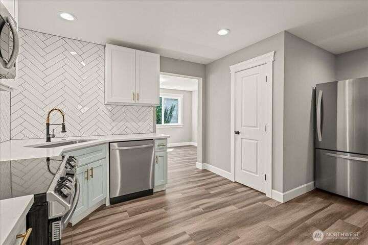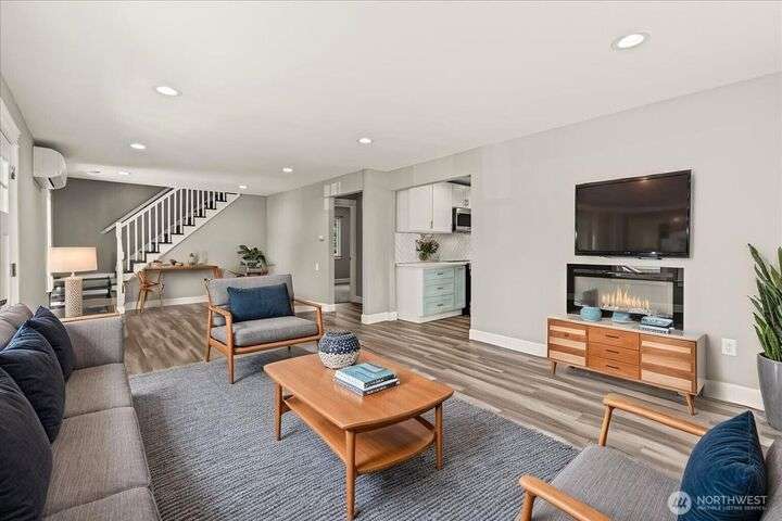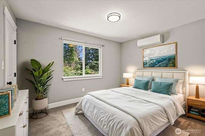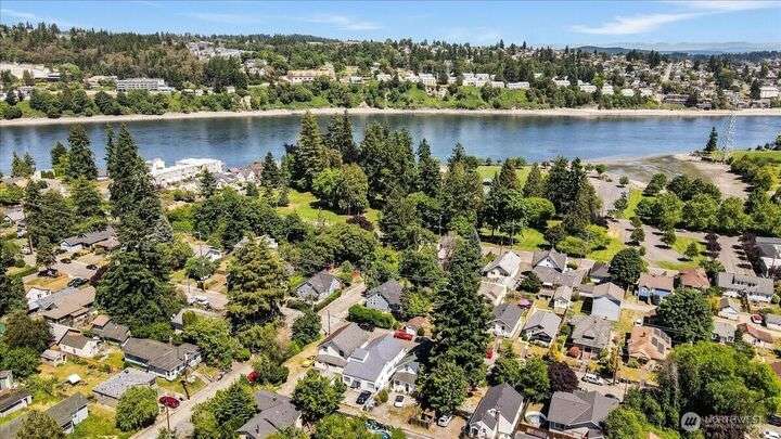 Welcome to this beautifully remodeled corner lot home, perfectly perched for natural light & privacy. Endless upgrades include a modernized kitchen, a heat pump to keep you cool on hot days, a new roof, siding, electrical, plumbing, windows, doors, water heater & water line. Just off the updated kitchen, the separate dining room opens to a sprawling, fully fenced backyard—ideal for summer BBQs, gardening, and outdoor entertaining. Extra large living room w/fire place offers a creative canvas while the basement offers abundant room for storage, projects, or parking or conversion to additional living space. Best of all, you’re just steps from Evergreen Rotary Park, the lively farmers market, summer shopping & the fast ferry & ferry terminal!