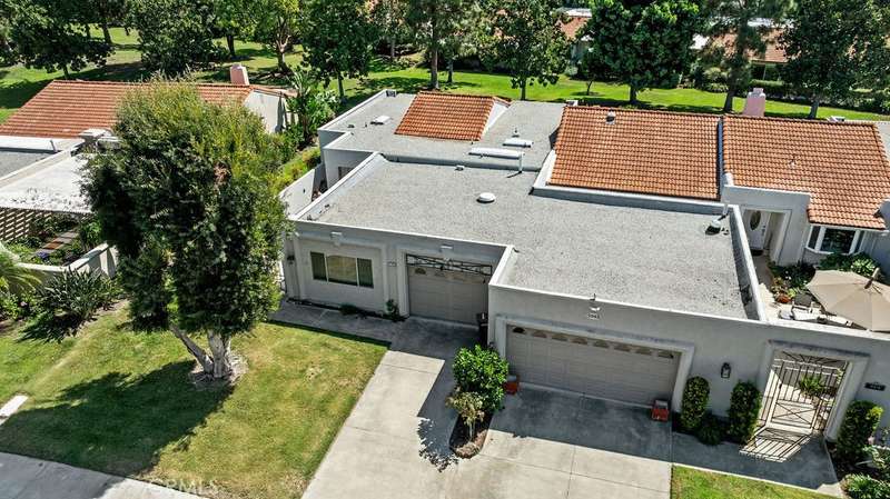 Opportunity awaits you to own a Francesca Model home in the active senior community of Laguna Woods. This single story end unit is located on a gorgeous, wide greenbelt. Enter the gated patio to the 2 bedroom, 2 bathrooms plus den of approx. 1643 sq feet. The wood vinyl entry features an open floor plan. It has a large living room with vaulted ceiling and full wall dual sliding doors to the gated patio and beautifully landscaped wide greenbelt. The dining area is open to the living room, kitchen, and the large bonus room. With the multiple windows for the light and airy feel, and the built in storage credenza, it can be a family room, office, or library. Don't miss the mirrored wet bar for entertaining your family and friends. The kitchen is efficient with multiple cabinets, built in appliances, electric stove, dishwasher and refrigerator. It has direct access to the one car garage with additional storage on both sides. One bedroom suite has a corner jet tub, newer vanity with a contemporary glass sink and walk in closet. The other bedroom has an adjoining bathroom with full size walk in shower and another walk in closet. This bathroom also has access from the hallway. Both bedrooms have large sliding doors to the patio. Imagine having your morning coffee or relaxing in the late afternoon or evening next to the peaceful landscaped greenbelt. There are multiple skylights, ceiling fans in every room, well maintained HVAC, and water heater. The washer and dryer are included. The Laguna Woods Community features golf, tennis and pickleball, swimming, fitness clubs, and approximately 200 clubs, social events, a performing arts center and activities. Laguna Beach, shopping, health centers and multiple gate guarded entries make Laguna Woods a lifestyle you don't want to miss.