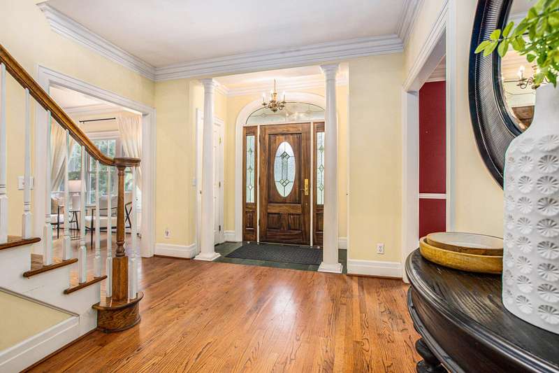 Tucked at the end of a secluded private drive in prestigious Ann Arbor Hills, this Damian Farrell-designed Colonial-Revival estate offers timeless elegance and exceptional craftsmanship. A grand two-story foyer leads to formal living and dining rooms with intricate moldings and hardwood floors that carry through the rest of the home. The spacious living room features a gas fireplace and twin French doors to a bright sunroom overlooking lush, manicured grounds. The open kitchen boasts cherry cabinetry, Corian counters, a central island, updated fridge and dishwasher, and a sunlit breakfast nook with access to a screened porch - perfect for morning coffee and outdoor dining. A mudroom connects to the attached two-car garage and rear patio, while a private study and powder room complete the main level. Upstairs, four generous bedrooms surround a central staircase, including a luxurious primary suite with two walk-in closets and a spa-like bath. The laundry room is conveniently located on this level, and the full basement with high ceilings offers excellent storage or finishing potential. Enjoy peace of mind with a whole-house generator, new attic insulation, and updated roof and HVAC system. Set on over half an acre of sculpted gardens and mature trees, and just minutes from UM, hospitals, and downtown Ann Arbor - this home offers pastoral serenity and unmatched convenience. Home Energy Score of 2. Download report at osi.a2gov.org/herd.