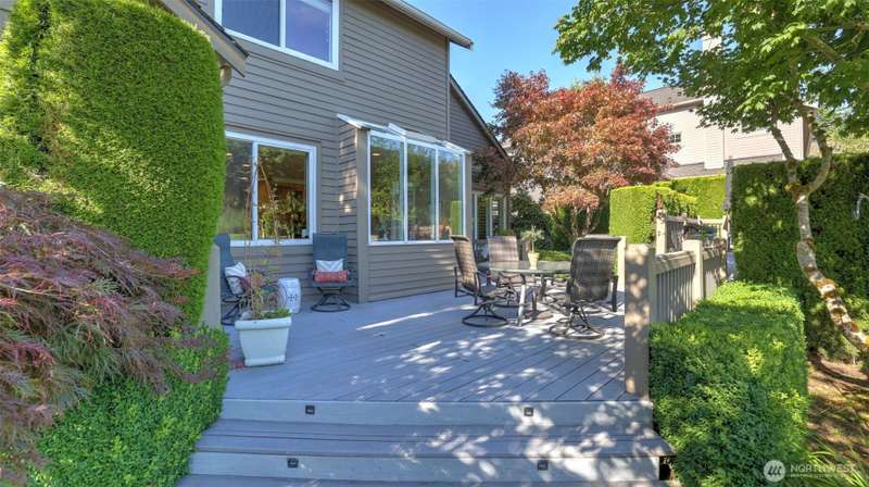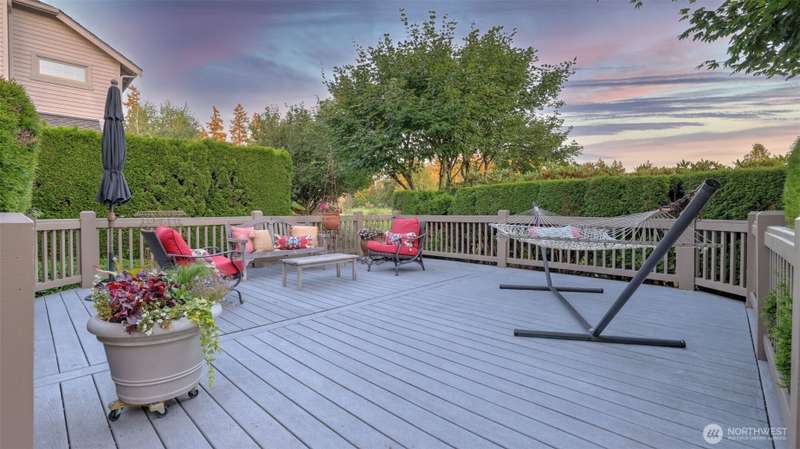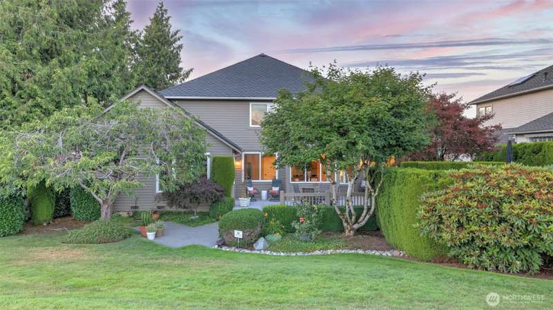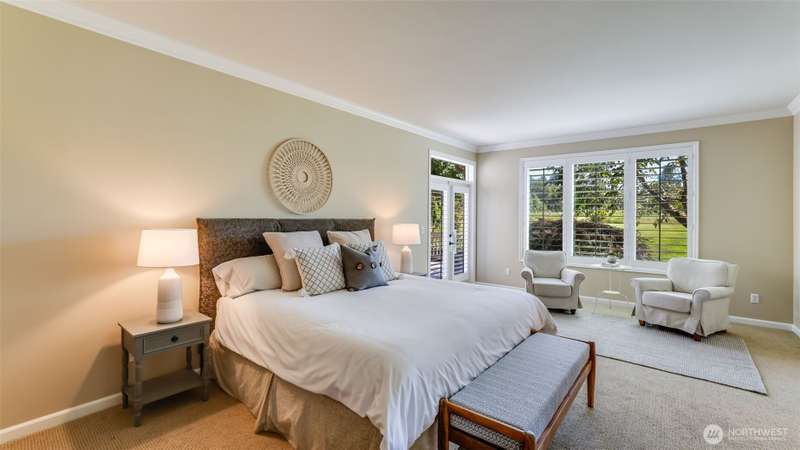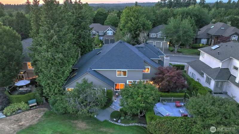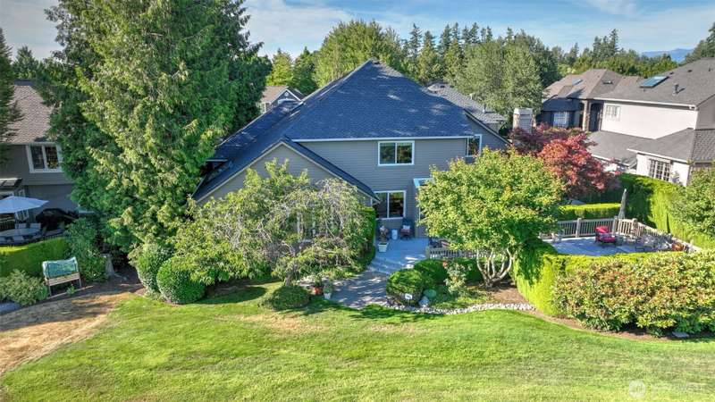 Nestled on the 15th green of the Plateau Club Golf Course in coveted Montrachet, this Murray Franklyn built home blends elegance, privacy, & peaceful golf course views. The 3,830 sqft layout features a main-level primary suite with private deck, chef’s kitchen with granite counters and walk-in pantry, refinished hardwoods, coffered ceilings, and rich millwork. Enjoy a main-floor den, oversized bonus room, and 3 additional bedrooms. Relax on the two-level composite deck with southern exposure, one screened for privacy, the other open to sweeping fairway vistas. Includes A/C, 3-car garage with shop space, & a 50-year Presidential roof. Minutes to top Lake Washington schools, Soaring Eagle Park, shopping, and dining—with easy I-90/520 access!