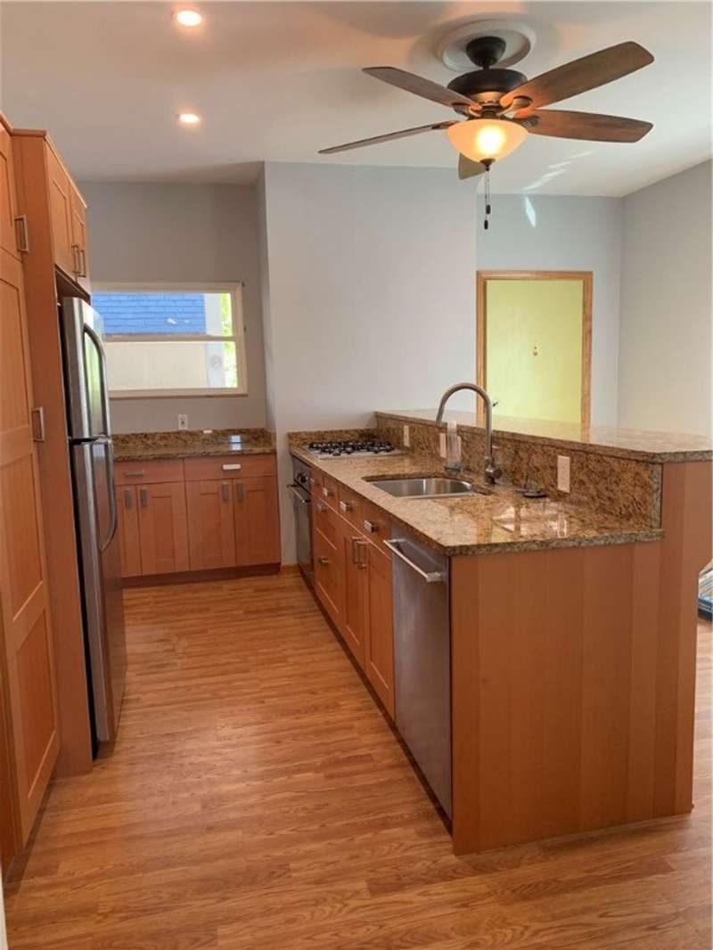 Enjoy beach house-style living in this beautifully renovated home! Updated kitchen & baths, open-concept main floor with island seating, and hardwood floors throughout. Flexible layout with 5 large rooms for bedrooms, office, gym, or den?plus a bonus 6th room or walk-in closet. Work from home in comfort with a dedicated office space & separate heating zone. Central A/C. Just minutes to downtown, hospitals, universities, parks, restaurants & more! Renovated full bath on 2nd floor, 1/4 bath on 1st, and walk-in shower in basement with included washer & dryer. Covered back porch, grassy yard, and off-street parking for 2 cars ?welcome home!