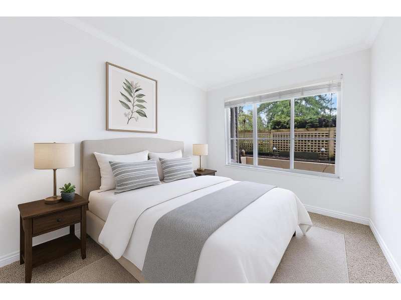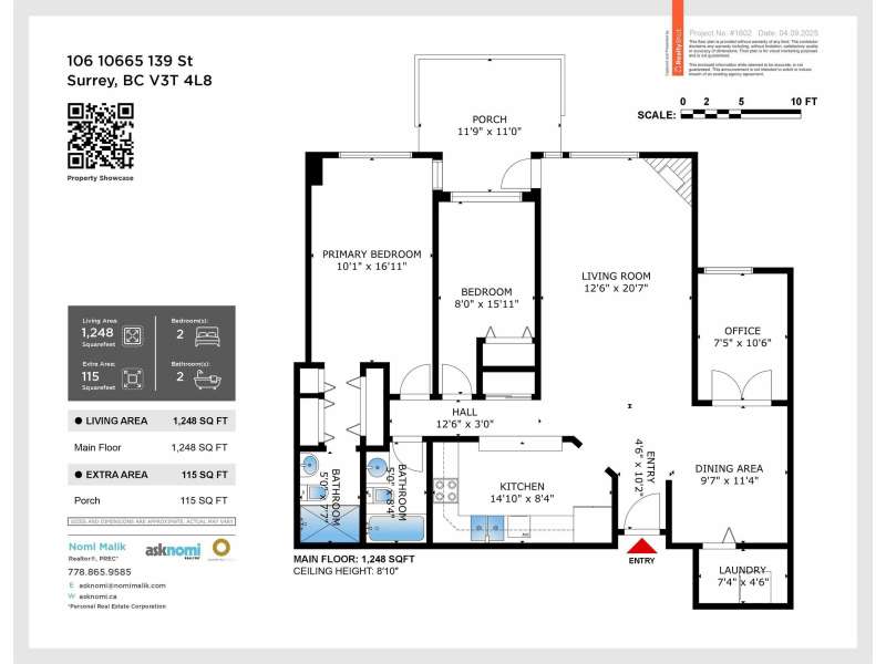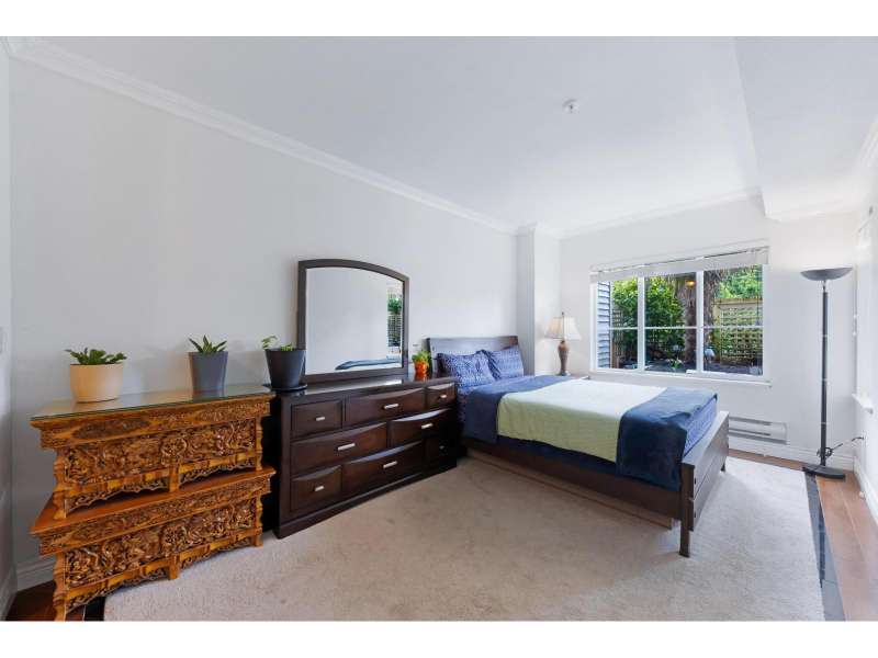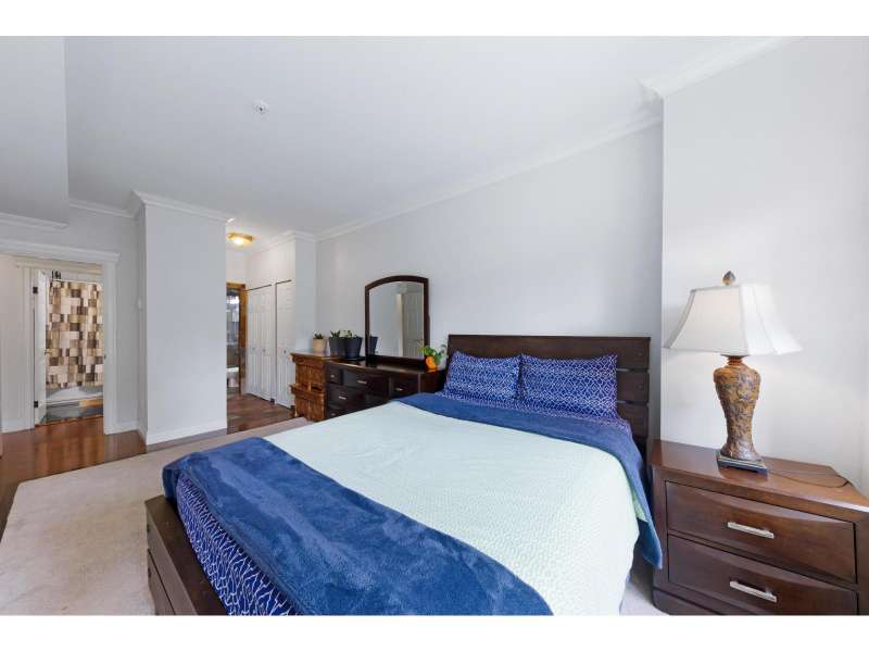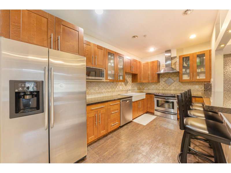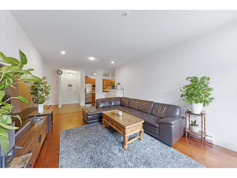 Crestview Court. This freshly painted & tastefully updated 2 bedroom + LRG windowed den (3rd bdrm) feat. 9 ft ceilings & rich mahogany h/w floors throughout. Offering gourmet chef's kitchen w/ stainless appliances, lrg farmhouse sink, pot lights, soft close shaker cabinets & granite countertops w/ breakfast bar. Enjoy a palatial master bedrm w/ full 3-piece ensuite & custom tiled shower. Enjoy your private & covered 115/sqft outdoor patio year round. With over 1,245/sqft of living space, incl. a LRG. in-suite laundry rm, two side by side parking spots & storage locker. Steps away from Skytrain, Central City mall, SFU, Rec Centre, Library, City Hall and Forsythe Elementary school/park are across the street. Pet Friendly. (id:58403)