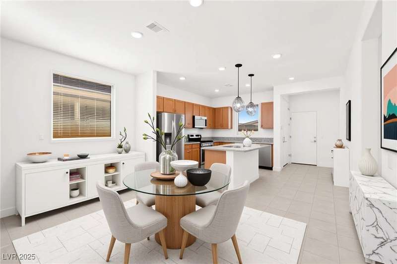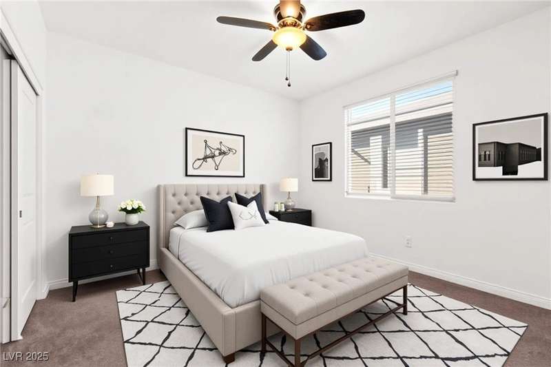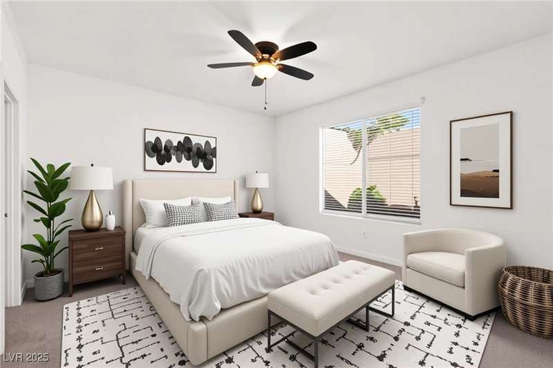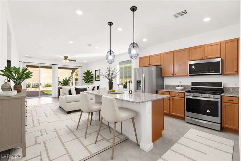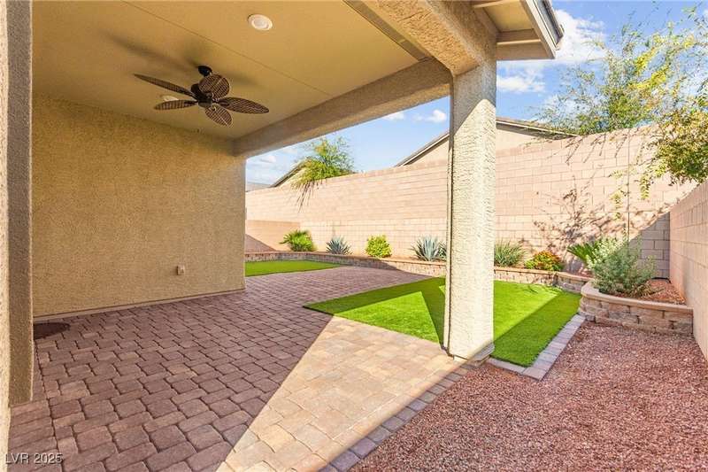 Explore this like-new, move-in ready residence within the gated 55+ Del Webb North Ranch Retirement Community! This 2-bedroom, 2-bathroom floor plan spans 1,282 sq. ft. and comes with a 2-car garage. Nestled on a spacious lot, it offers being conveniently located just a short stroll from the Clubhouse – the perfect location! Notable upgraded backyard oasis with covered patio and the opportunity to enjoy the beautiful weather in Vegas. Don't let this remarkable chance slip away!