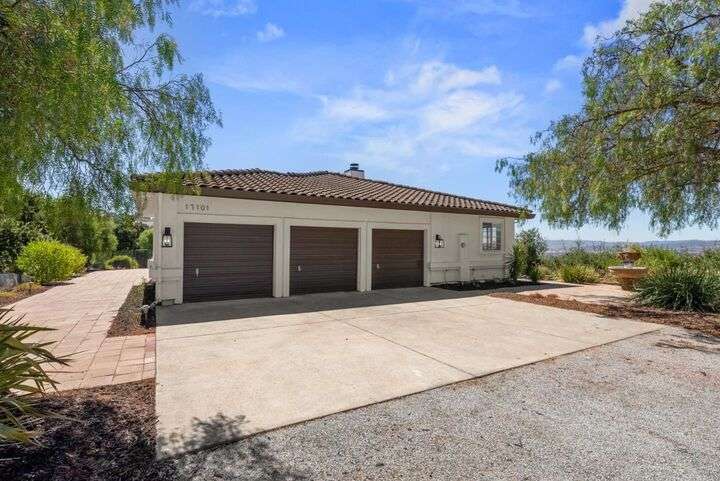 Welcome to 17101 Kruse Ranch Lane, truly once in a lifetime opportunity to create a subdivision of homes, dream horse property, and your own private estate. This stunning home features 4 bedrooms, 2.5 baths, and spacious 3-car garage, all set against breathtaking valley views on nearly 40 acres of land. The formal living and dining rooms boast vaulted ceilings and picturesque valley views. The kitchen is a chefs delight, equipped with GE stainless steel double ovens, a 4-burner electric cooktop, oak cabinets, and a cozy breakfast nook. Family room features vaulted ceilings, wet bar, fireplace, and patio access with more valley views. The luxurious primary suite includes sliding doors to the patio, walk-in closet, and bathroom with double sinks, a 3-person jacuzzi, and walk-in shower. Three auxiliary bedrooms are spacious and bright, each with carpet and double pane windows. Additional amenities include laundry room with hardwood floors and utility sink. The hall bathroom features tile floors, an oak vanity, and a shower over the tub. Enjoy the courtyard with a fountain, a swimming pool, and vegetable beds, all set against nearly 40 acres of open space. Located near Morgan Hills best amenities, including the Outdoor Sports Center, library, downtown, and easy access to Highway 101