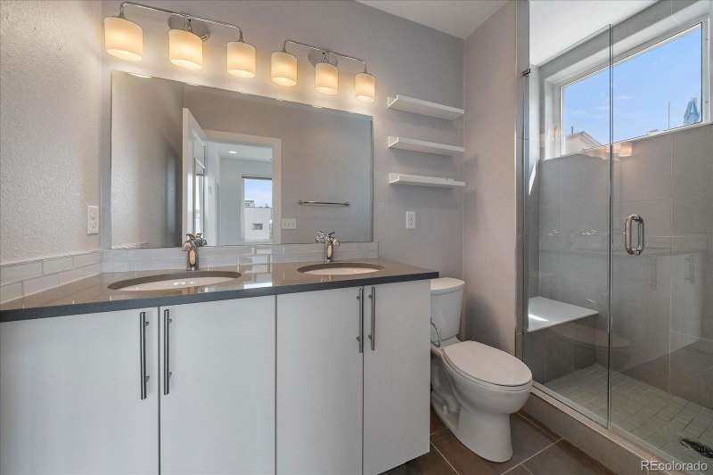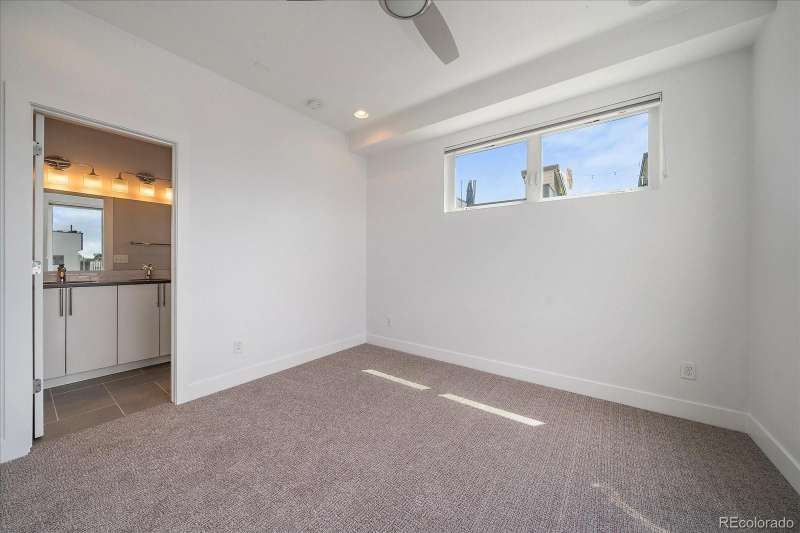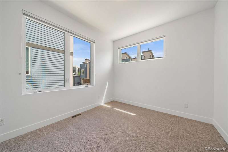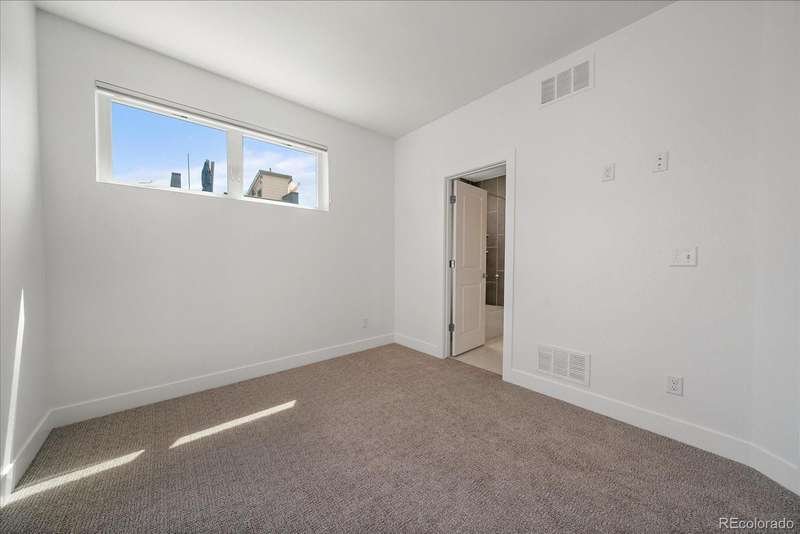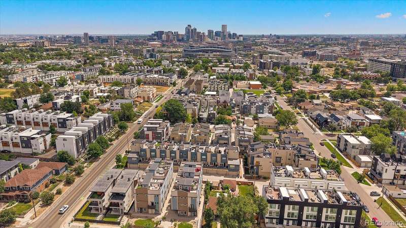 Picture-perfect Sloans Lake townhome with AMAZING MOUNTAIN views just one block from the park! This end-unit townhome shines from the main floor entry all the way up to the massive rooftop deck with unbeatable city and mountain views. The open-concept main level is filled with natural light, featuring a beautiful kitchen with a gas range, stainless steel appliances, ample cabinetry, quartz countertops, a breakfast bar, and a glass mosaic backsplash. The kitchen flows seamlessly into the great room and dining area, perfect for entertaining with additional storage located under the stairwell. Upstairs, youll find a spacious primary suite with a private 4-piece bath and walk-in closet, an additional bedroom with its own en-suite bath, and a convenient laundry closet. Whether youre enjoying your morning coffee or hosting friends under Colorados sunsets, the massive rooftop deck truly feels like an extension of your home. Additional amenities include a two-car attached garage, fresh paint, and brand-new flooring through the home. Enjoy a move-in-ready, low-maintenance lifestyle with the best location in Sloans Lake--one Denvers most vibrant neighborhoods!
