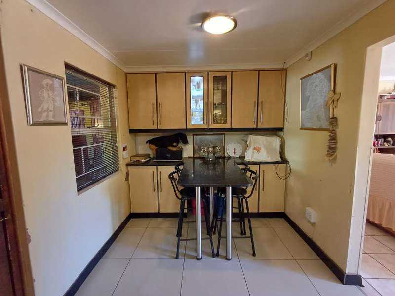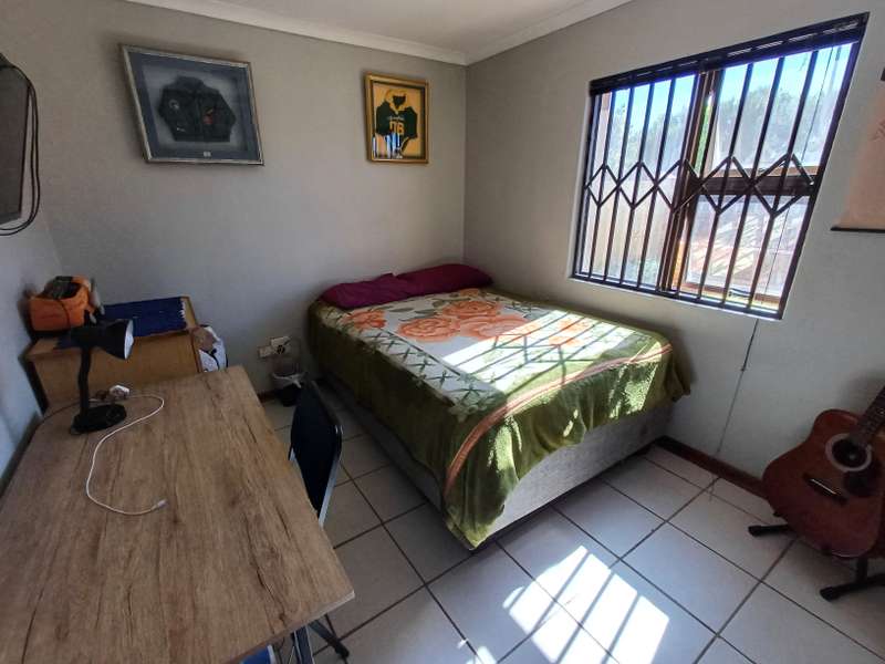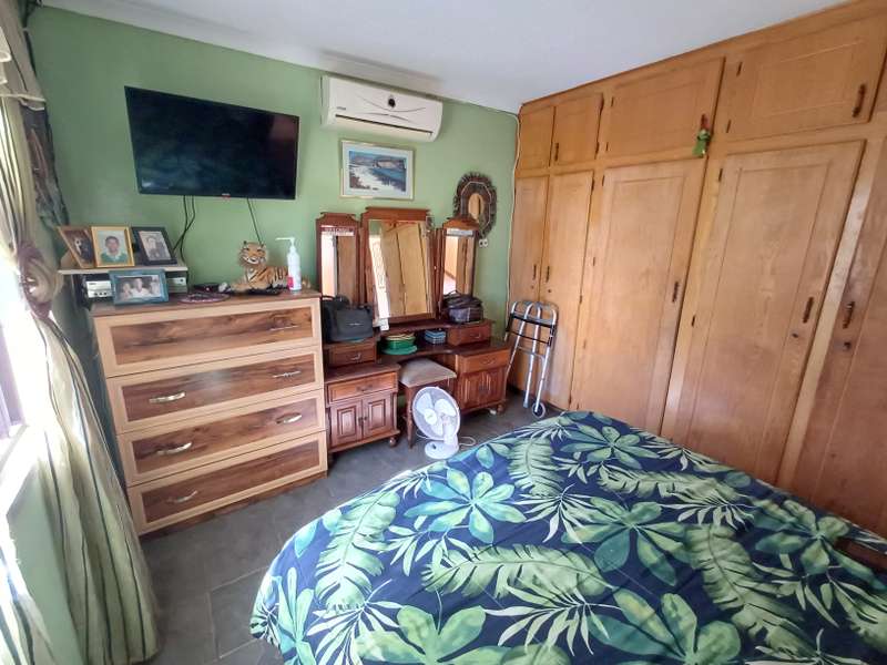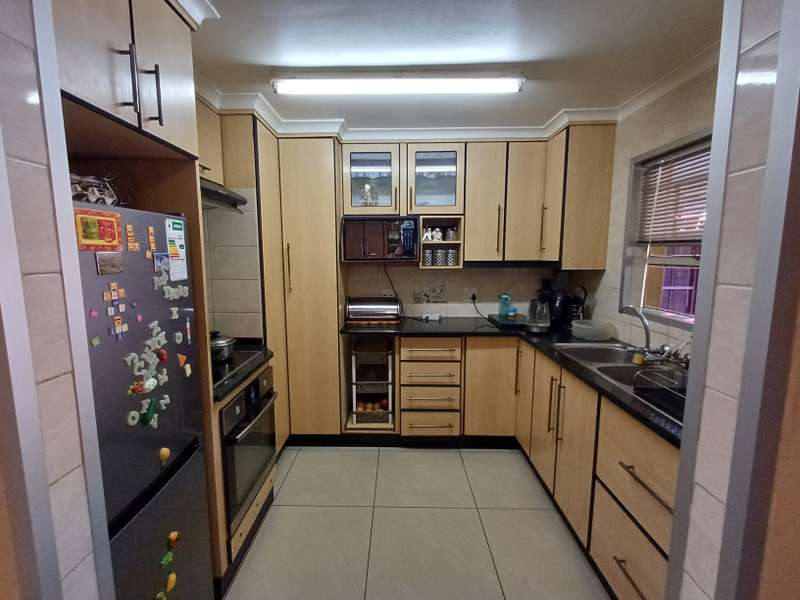 Discover your ideal home in this beautifully maintained three-bedroom, two-bathroom residence, perfect for families or first-time buyers seeking comfort and functionality. All bedrooms are fitted with built-in cupboards, while the main bedroom features an ensuite bathroom and air conditioning for added convenience. The kitchen is equipped with ample built-in cabinetry, an eye-level oven, and a water purification system. It flows effortlessly into the spacious lounge area, creating a warm, open-plan environment ideal for family living and entertaining. The property boasts a generous yard with a fully enclosed outdoor entertainment area, a separate laundry room, and an outside toilet. Additional features include a carport accommodating up to three vehicles, a garage, and a storeroom, offering practical storage solutions. Security is enhanced with surveillance cameras, and a 1000-litre JoJo tank ensures water availability. This well-laid-out home combines practicality with comfort in a sought-after setting. Don’t miss the opportunity to make this charming and secure property your own.