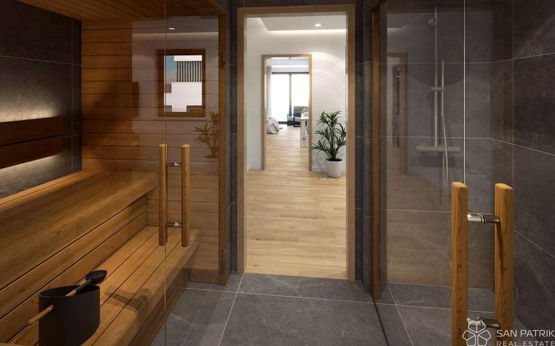 Special attention has been given to year-round comfort and relaxation. The villa offers a heated infinity pool of 28 m2, a sun deck with sea views, a jacuzzi and a combined sauna (Finnish and infrared), as well as its own fitness zone. The fireplace in the living room adds to the atmosphere of warmth and elegance. Technical equipment also allows for business use, with stable internet, printer, smart board, and a quiet working environment.