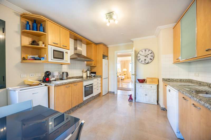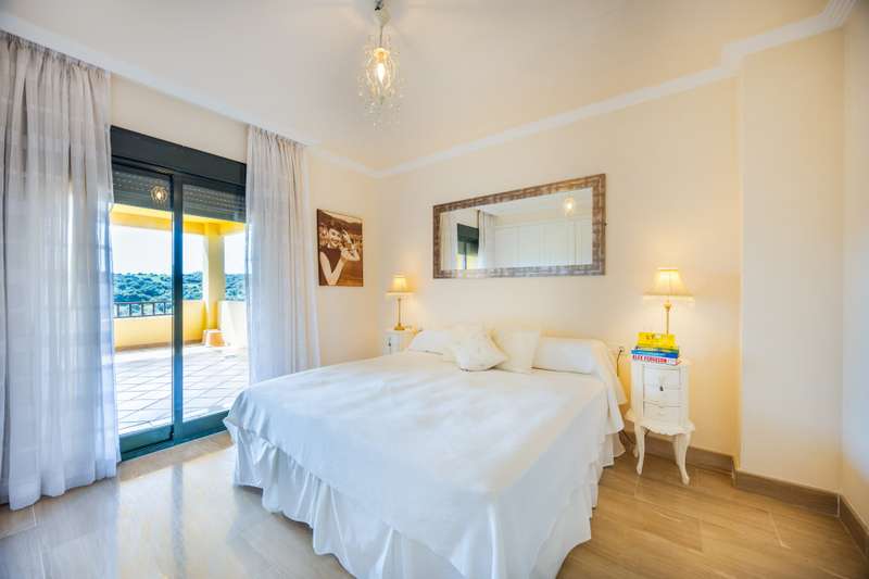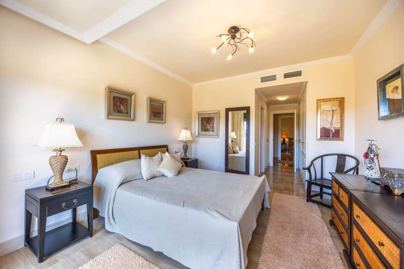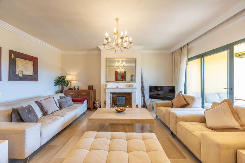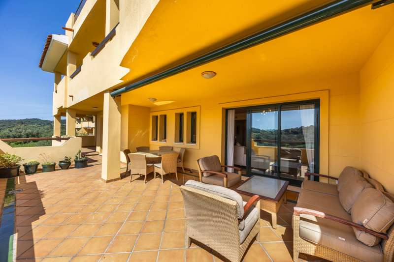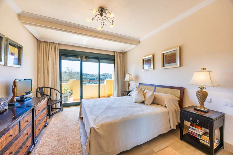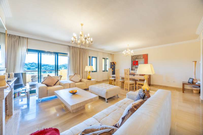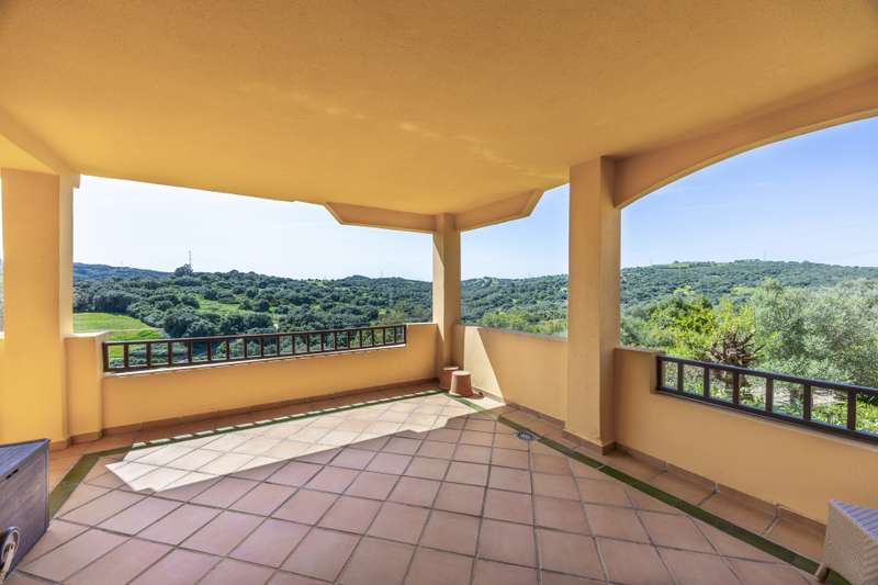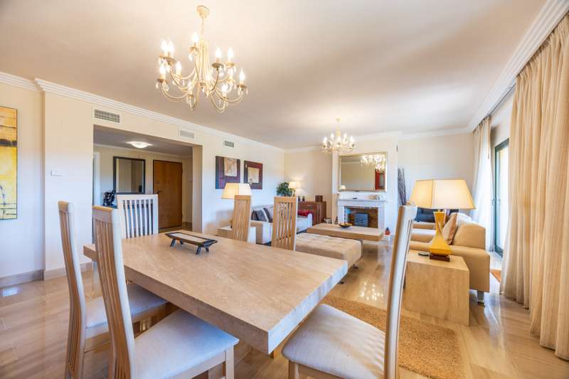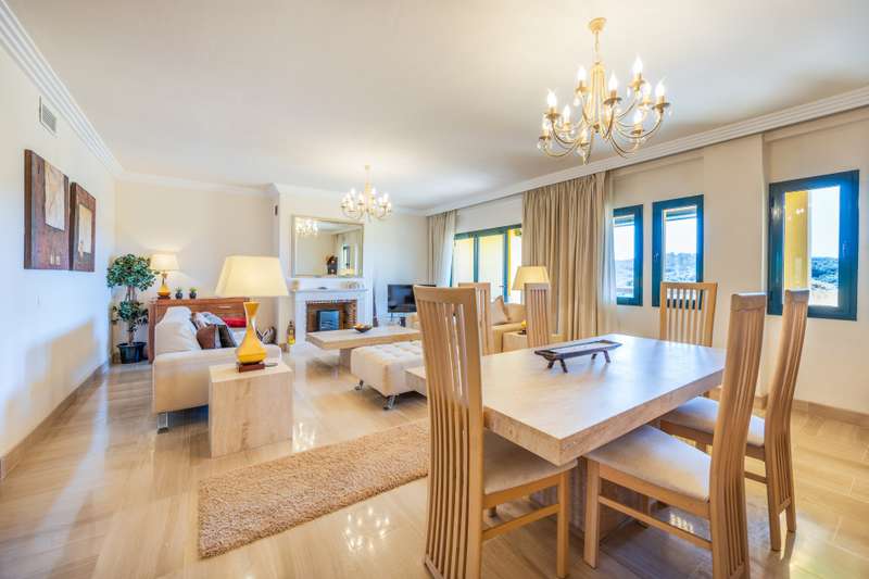 This stunning apartment is located in the exclusive and highly sought-after residential complex of LOS GAZULES in Sotogrande Alto. With a built area of 259.75 square meters, this property is the ideal choice for those seeking a peaceful and natural environment combined with comfort and luxury. Its privileged position offers panoramic views of the Almenara golf course, the lake, and the surrounding mountains—features that enhance the charm of this residence and ensure a high level of privacy. The apartment comprises 3 spacious bedrooms, each with its own en-suite bathroom and direct access to various terraces, perfect for enjoying the views and the serene atmosphere. The layout includes a generous living-dining area with a fireplace that invites relaxation, while the fully equipped independent kitchen includes a laundry area, ensuring maximum functionality. Additionally, the property comes with a storage room and two parking spaces in the communal garage, both included in the price. Additional features include air conditioning and central heating, providing year-round comfort. The expansive terraces extend the living space, while details such as glass doors, built-in wardrobes, and accessible design for people with reduced mobility add both functionality and modernity. The apartment is in excellent condition. Set within a gated community with 24-hour security, residents enjoy access to a communal swimming pool and landscaped gardens, perfect for outdoor leisure. Its close proximity to golf courses, the beach, shops, the marina, and especially the prestigious Sotogrande International School (within walking distance for children) adds significant value, making it an ideal option as both a primary residence or a solid investment in one of Sotogrande’s most desirable areas. Don’t miss this opportunity—contact us to arrange a viewing.